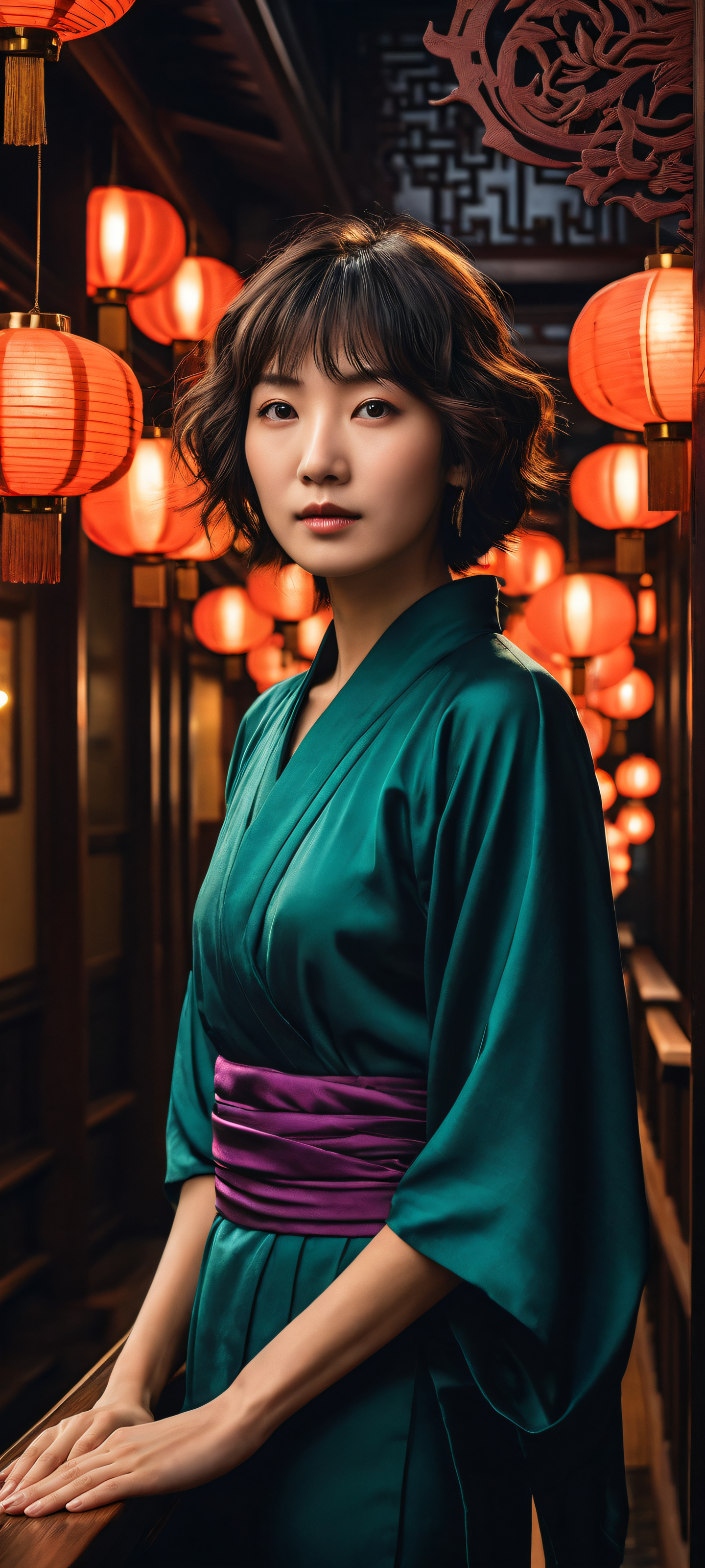 A breathtaking vertical portrait artwork of Chihiro placed in the lower-middle with intricate micro-details of Japanese architecture and mystical energy swirling around her, Perfectly clean and empty top half with vast pure void, gradually giving way to a beautifully rendered Asian-inspired interior with an 8K resolution ultrawide bridge railing, Award-winning digital art with pristine clarity, showcasing expertly crafted textures and atmospheric lighting, Sleek dark mode aesthetic with deep perfect blacks and striking crisp contrast, accented by elegant luminescent highlights that evoke a sense of mystique and wonder, Muted greens, blues, and purples, evoking the mystical and otherworldly atmosphere of Spirited Away’s fantastical world, elegant low-key lighting, deep perfect blacks, striking contrast, sleek dark mode aesthetic, luminescent accents, deep rich colors, portrait composition, centered subject in the lower middle, perfectly clean and smooth top half for UI, extreme depth of field blurred background, highly textured surfaces, intricate micro-details, physically based rendering, award-winning digital art, epic breathtaking scale, stunning visual impact, perfect composition, macOS wallpaper aesthetic, masterpiece, 2K QHD resolution, 9:20 aspect ratio.