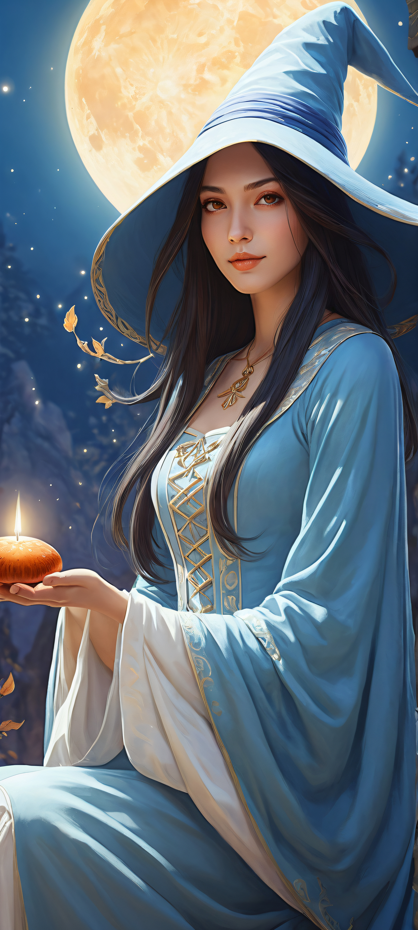 A breathtaking vertical portrait artwork of Sucy Manbavaran, a witch with wide sleeves and long hair, placed in the lower-middle with insane micro-details of her mushroom-inspired magic spells, A perfectly clean and empty top half with vast pure void, allowing for seamless integration with iOS widgets, while the bottom half features a whimsical, dreamlike scenario, Award-winning digital art, stunning visual impact, with a focus on crisp, high-contrast lines and textures, reminiscent of classic anime illustrations. The overall design is a masterpiece, showcasing pristine clarity., エーテル的, radiant lighting, with soft, gentle rays of light illuminating Sucy’s face and the surrounding environment, creating an otherworldly ambiance. Ray-traced reflections add depth and dimensionality to the scene., A calming blue background, punctuated by warm, golden tones from Sucy’s magic spells, evoking a sense of wonder and enchantment, ethereal lighting, radiant, brilliant colors, ray traced reflections, 原始的な透明度, portrait composition, centered subject in the lower middle, perfectly clean and smooth top half for UI, extreme depth of field blurred background, highly textured surfaces, intricate micro-details, physically based rendering, award-winning digital art, epic breathtaking scale, stunning visual impact, perfect composition, macOS wallpaper aesthetic, masterpiece, 2K QHD resolution, 9:20 aspect ratio.