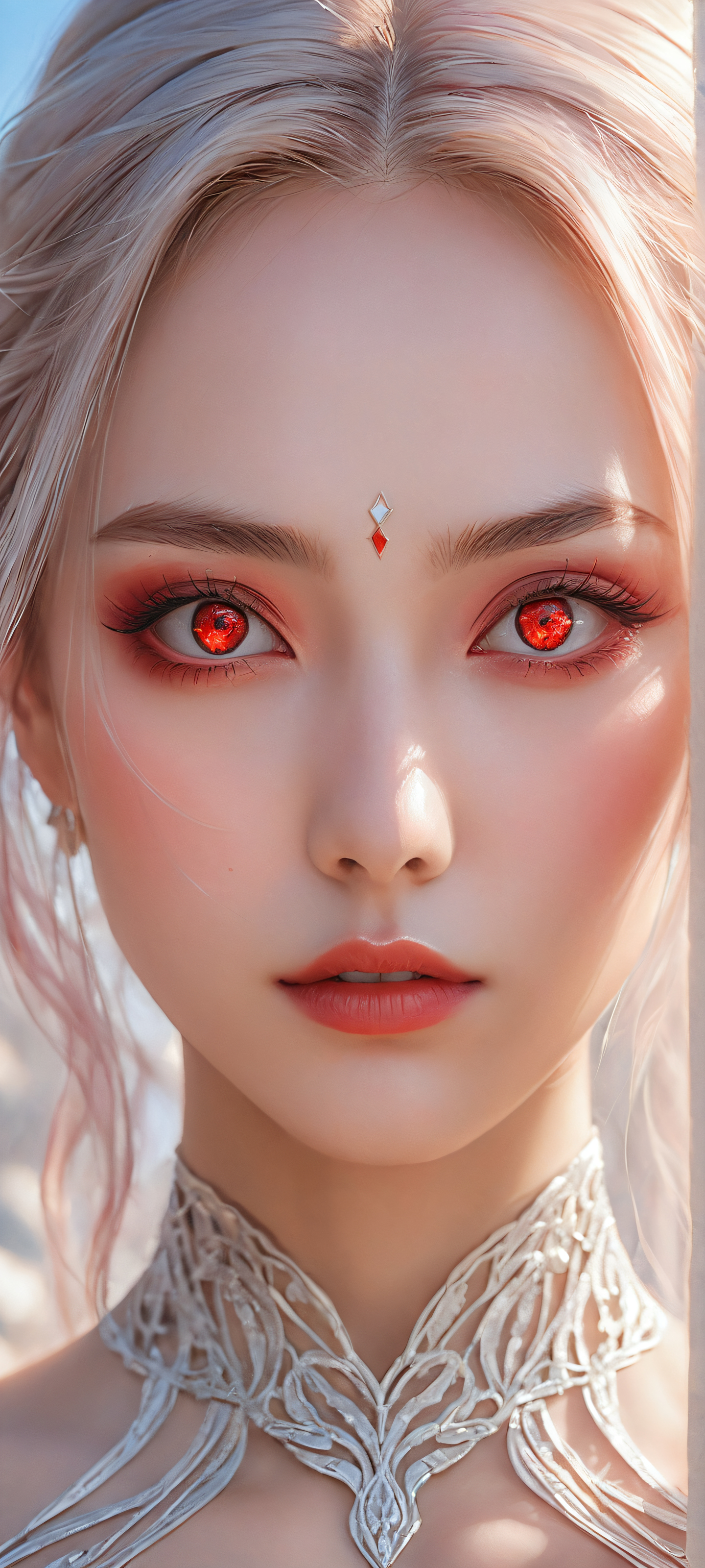A breathtaking vertical portrait artwork of Yor Forger, the anime girl placed in the lower-middle with intricate micro-details on her face and long hair, looking at the viewer with red eyes., A perfectly clean and empty top half with vast pure void, allowing UI widgets to breathe and providing an immersive atmosphere., Award-winning digital art with stunning visual impact, blending illustration and digital painting techniques for a masterpiece that shines at 8k resolution and 16:9 aspect ratio., Ethereal lighting with radiant, brilliant colors and ray-traced reflections, casting a warm glow that accentuates the characters’ features and fills the scene with a sense of wonder., A palette dominated by calming pastel hues, with splashes of deep red in Yor’s eyes, evoking a sense of mystique and drawing the viewer into her enigmatic world., ethereal lighting, radiant, brilliant colors, ray traced reflections, 原始的な透明度, portrait composition, centered subject in the lower middle, perfectly clean and smooth top half for UI, extreme depth of field blurred background, highly textured surfaces, intricate micro-details, physically based rendering, award-winning digital art, epic breathtaking scale, stunning visual impact, perfect composition, macOS wallpaper aesthetic, masterpiece, 2K QHD resolution, 9:20 aspect ratio.
