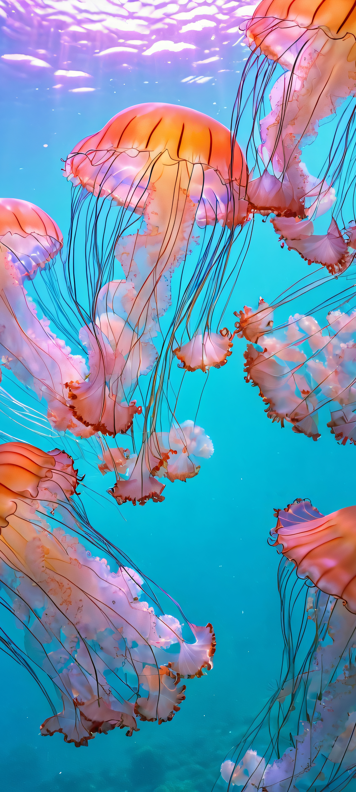 Step into the mesmerizing world of jellyfish, perfectly optimized for your iPhone, Samsung Galaxy, or Android home screens. This breathtaking 2K QHD masterpiece brings the tranquility of the ocean to your mobile device, featuring soft pastel hues and intricate details that will leave you in awe.