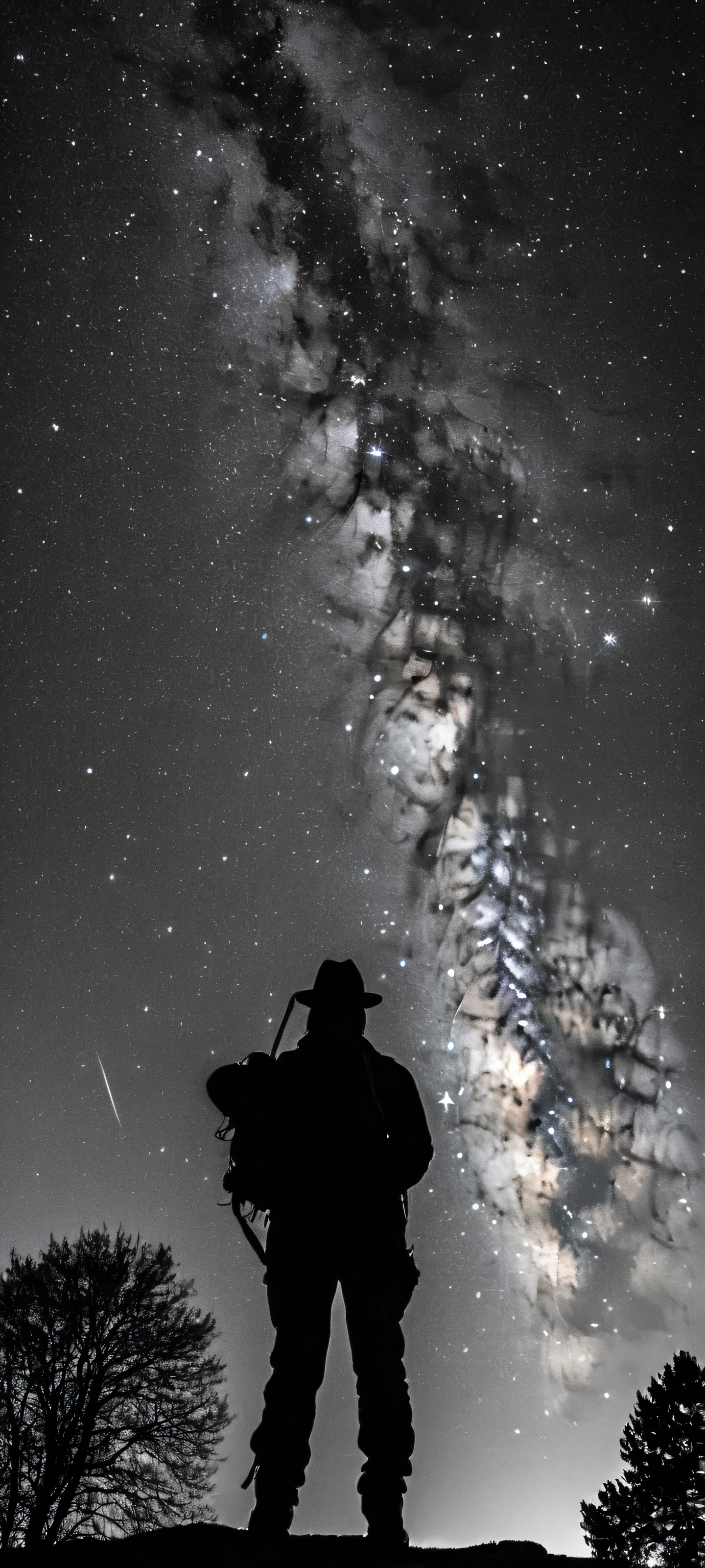 A lone explorer stands out against a breathtaking starry night sky on an iPhone or Android device.