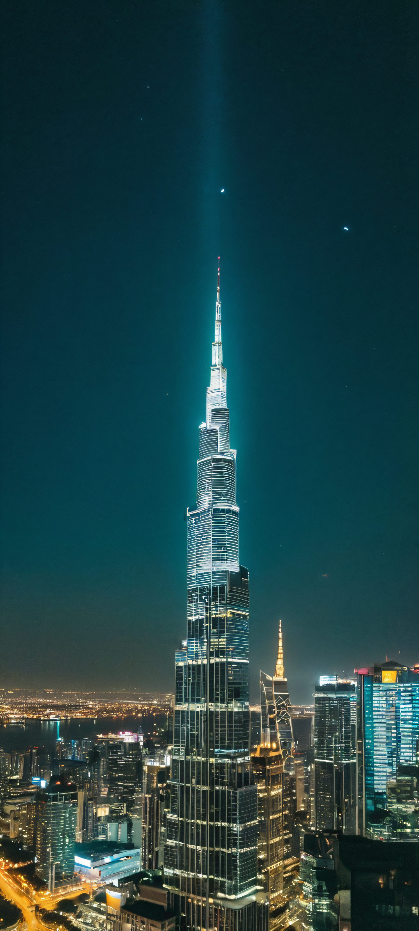 Elevate your mobile experience with this breathtaking vertical wallpaper, expertly crafted to be perfectly optimized for iPhone, Samsung Galaxy, and Android home screens. Shot on 35mm film using Kodak Portra 400, this masterpiece showcases a Lone Guardian standing tall under the city skyline at night, with subtle halation and organic film grain adding depth and character.