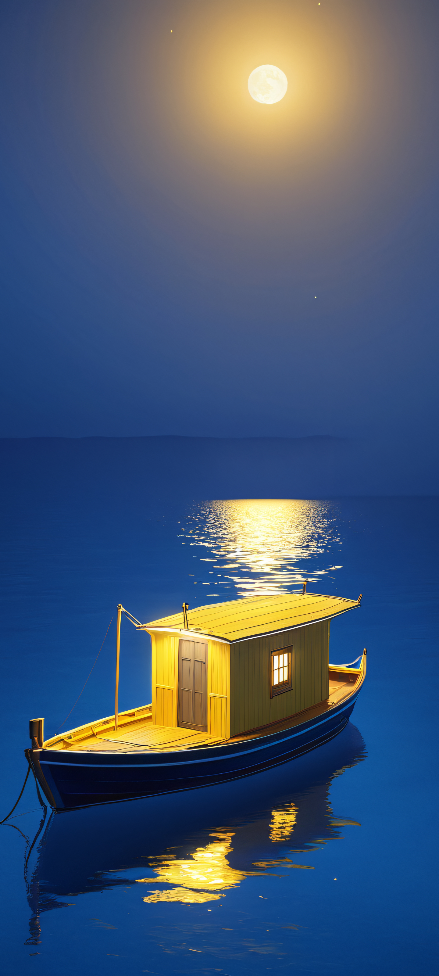 Add a touch of serenity to your iPhone, Samsung Galaxy, or Android home screen with this breathtakingly beautiful wallpaper. The luminous boat stands out against the soft, twinkling stars and the deep blue of the sea, creating a sense of peace and tranquility. Perfectly optimized for your mobile device, this masterpiece is a must-have for anyone looking to elevate their mobile experience.