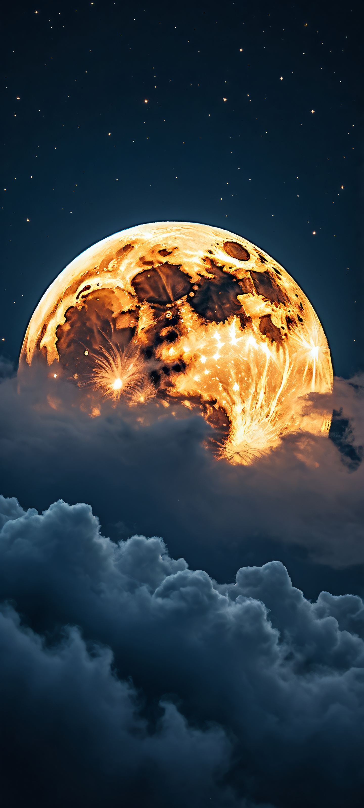 iPhone/Android Wallpaper - Breathtaking Vertical Portrait of Full Moon with Celestial Sparks and Clouds