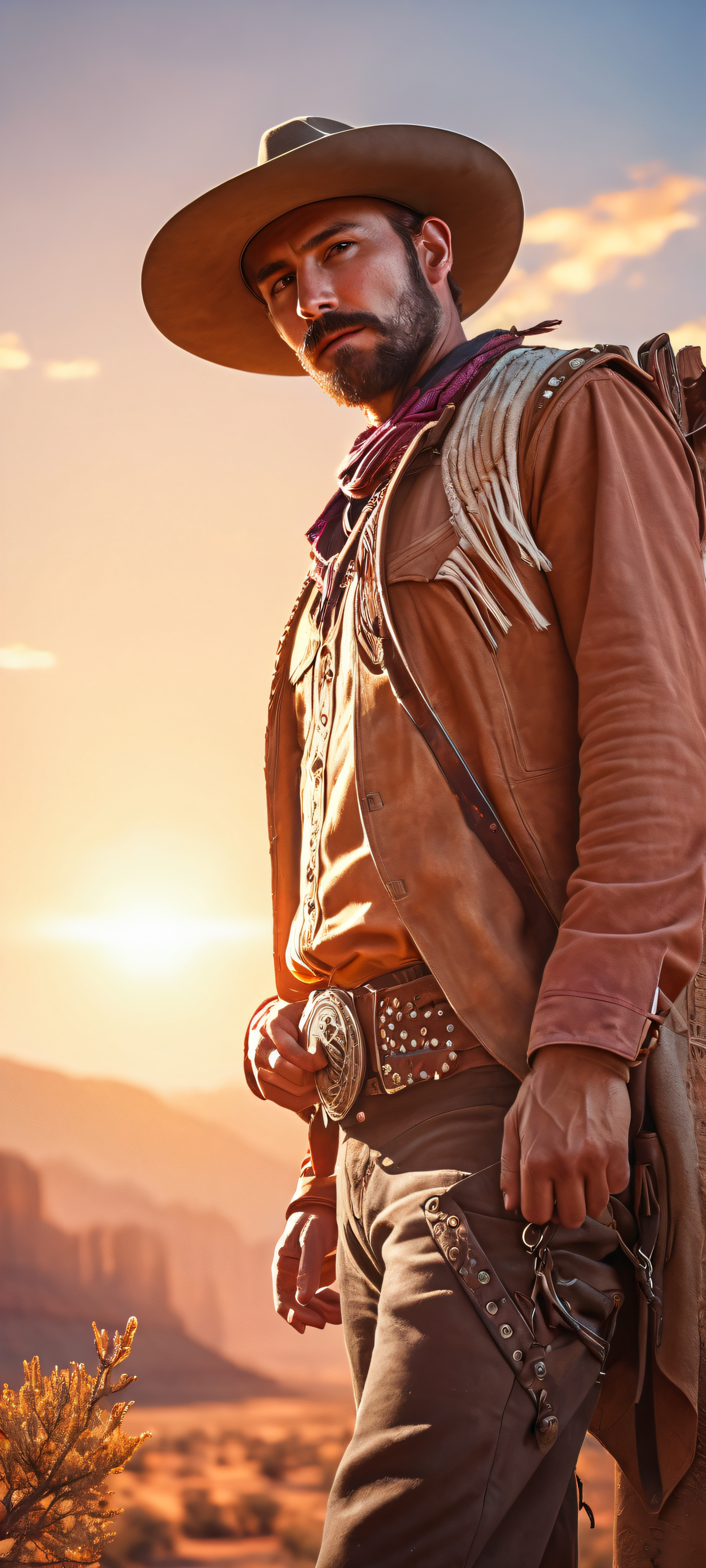 Majestic Cowboy at Sunrise 2K QHD Mobile Wallpaper Free Download: