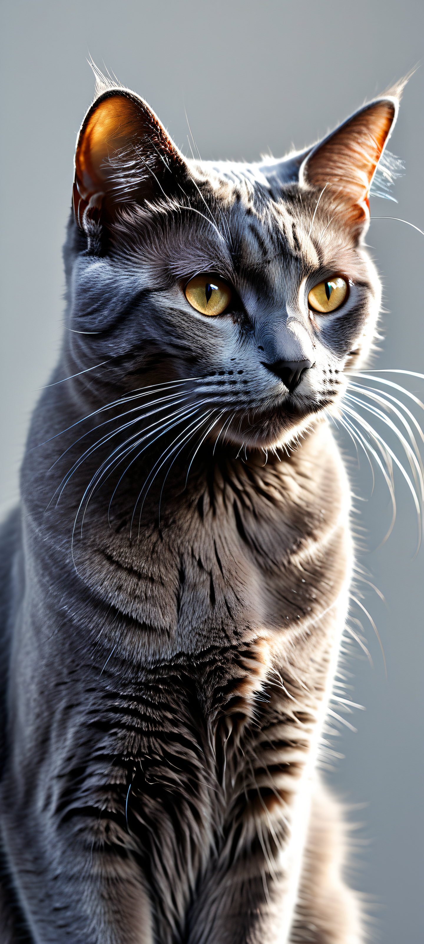 Perfectly optimized for your iPhone, Samsung Galaxy, or Android home screen. This stunning digital art features a breathtaking portrait of a regal black cat set against a serene gradient background, perfectly showcasing the fusion of texture and realism. The softbox lighting creates gentle shadows, highlighting the cat’s majestic fur in pristine clarity.