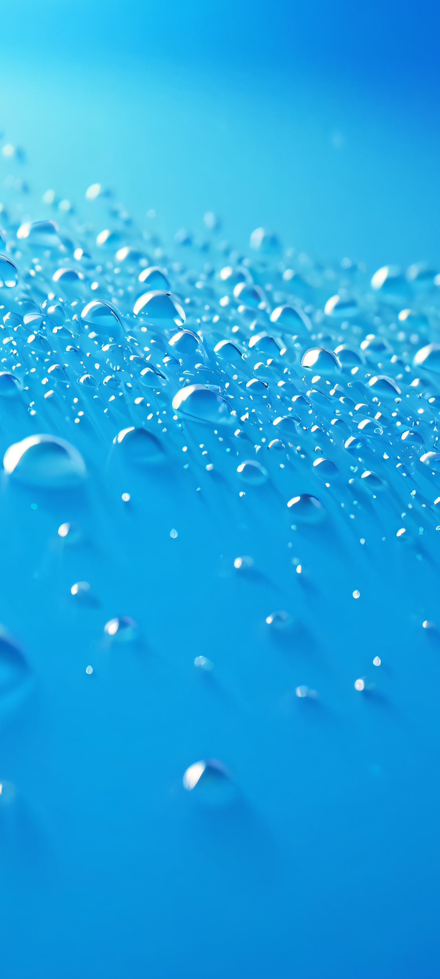 A serene landscape of droplets on a clear blue surface, perfect for iPhone and Android home screens