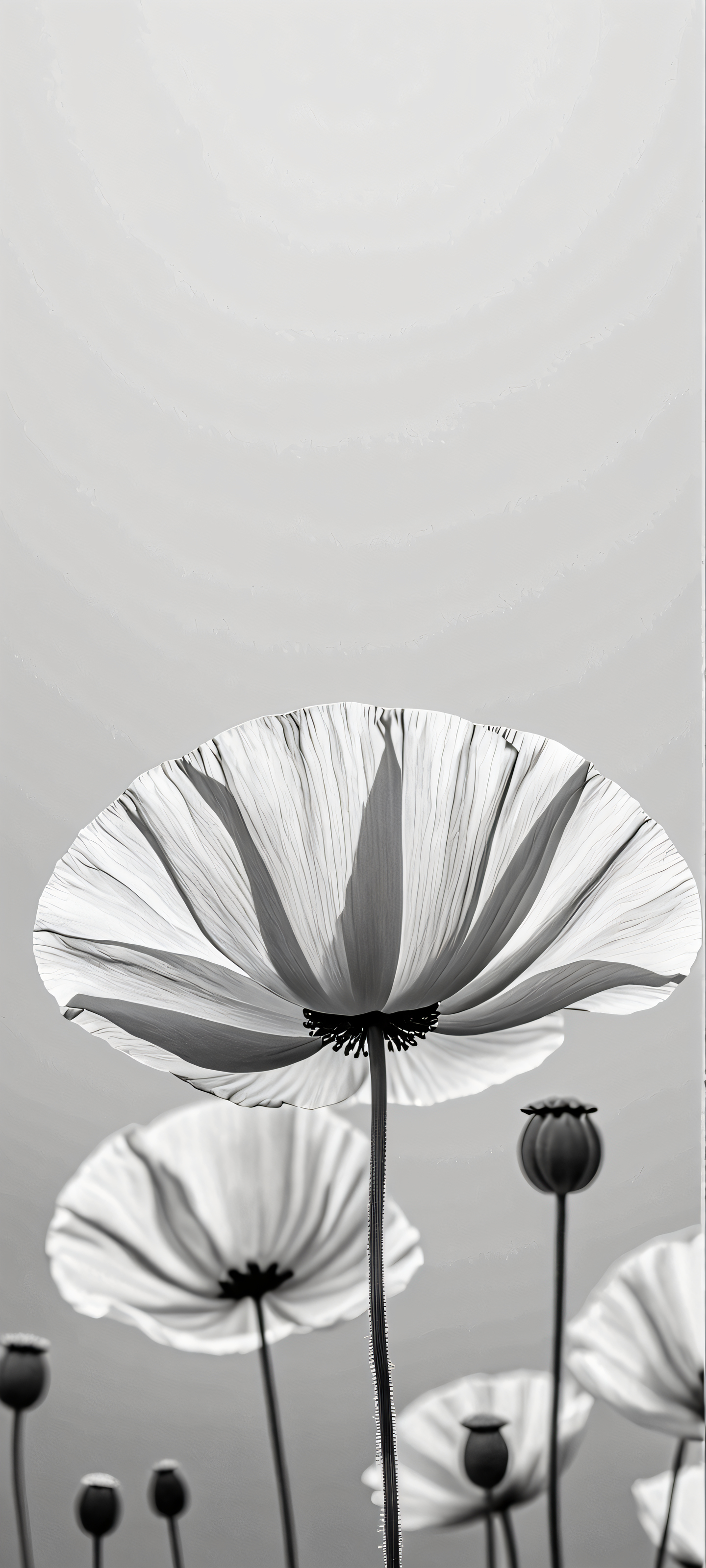Indulge in the serene beauty of this 2K QHD masterpiece, expertly crafted to adorn your iPhone or Samsung Galaxy home screen. The delicate petals of the poppies dance across a muted, pastel background, creating an otherworldly atmosphere that’s simply breathtaking.