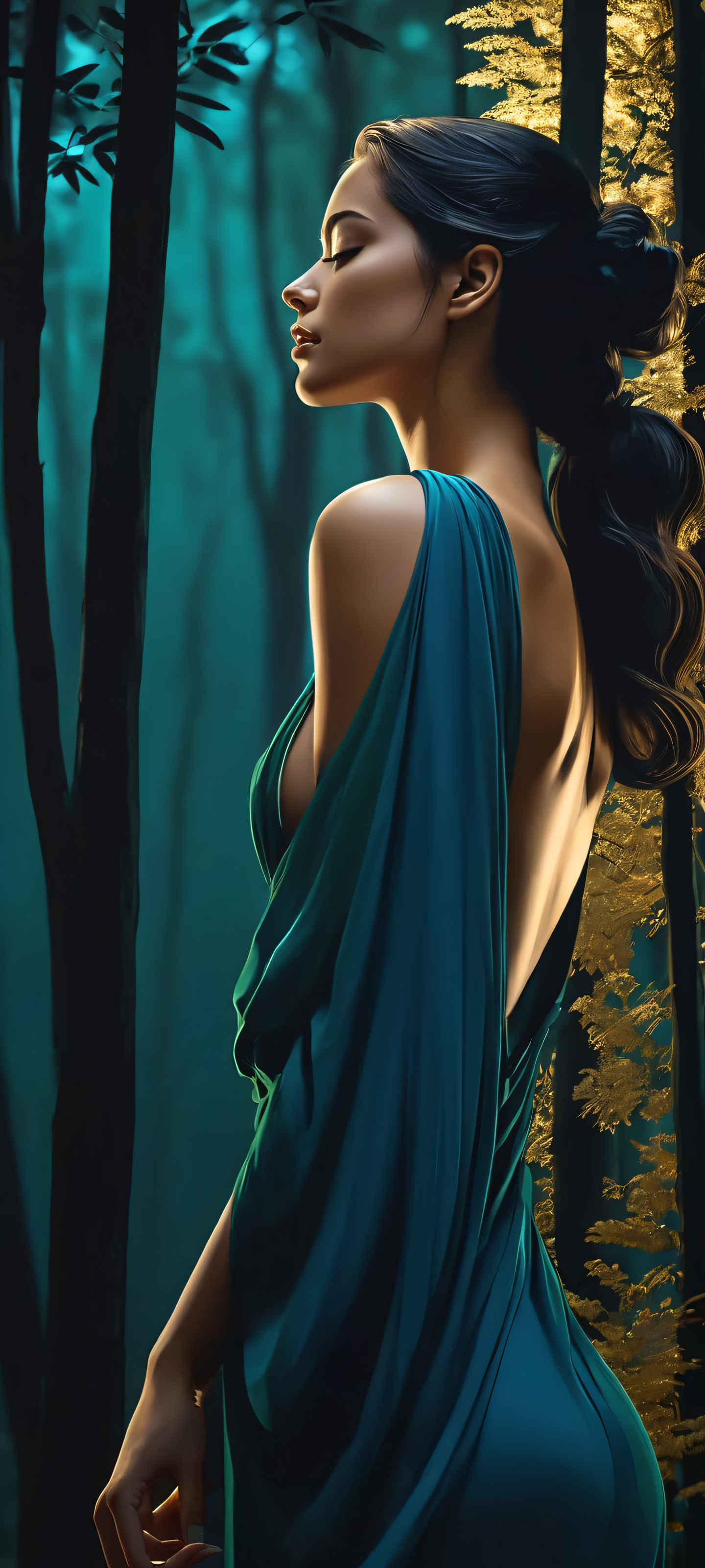 Escape to a realm of magic with this stunning vertical mobile wallpaper featuring a captivating female figure amidst the mystery of a moonlit dark forest. This masterpiece is specifically designed for perfect viewing on iPhone, Samsung Galaxy, and Android home screens, boasting 2K QHD resolution and meticulous attention to detail.
