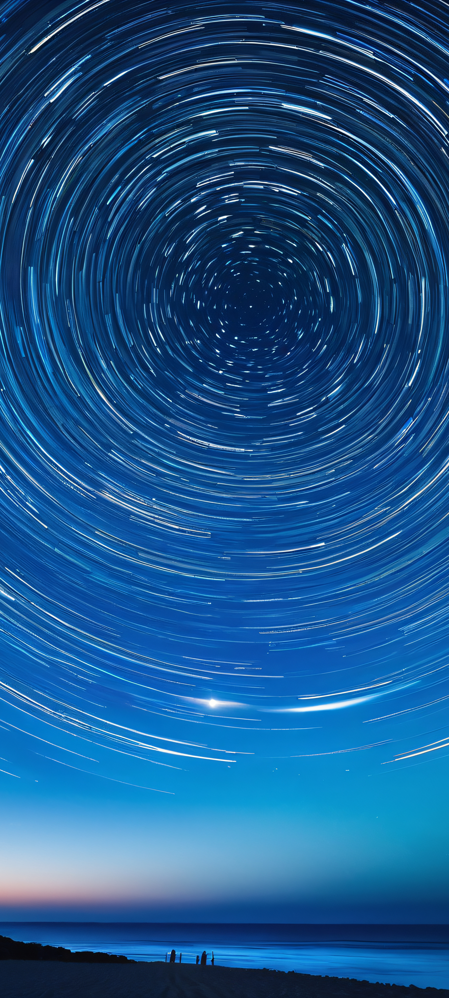 Experience the serenity of a moonlit ocean with this breathtaking 2K QHD masterpiece. Designed specifically for optimal display on iPhone, Samsung Galaxy, and Android home screens, this image features a stunning Star Trail above a peaceful ocean, with deep blues and subtle details. Perfectly optimized for your mobile device.