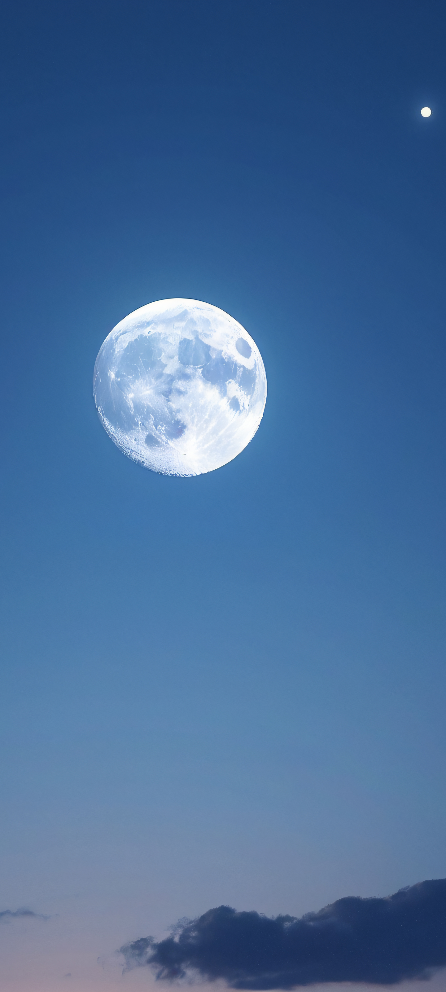 Indulge in the serenity of this breathtaking 2K QHD masterpiece. This stunning vertical mobile phone wallpaper features a majestic moon shining brightly against a celestial canvas of deep blues and creams. Perfectly optimized for your iPhone, Samsung Galaxy, or Android device, it’s the perfect addition to any home screen.