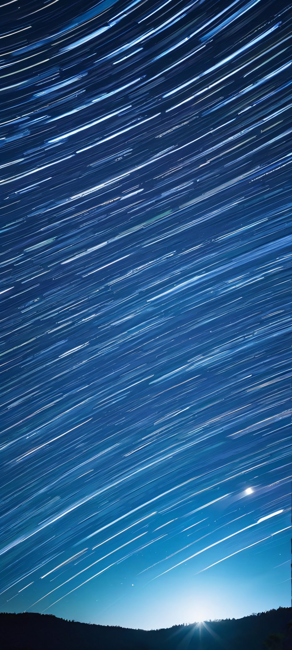 Elevate your mobile phone’s home screen with this stunning vertical wallpaper. Perfectly optimized for iPhone, Samsung Galaxy, and Android devices, this masterpiece showcases the beauty of star trails against a moonlit night sky, featuring deep blues, soft greens, and soft whites. Highly detailed and in 2K QHD resolution, this breathtaking scene is sure to leave a lasting impression.