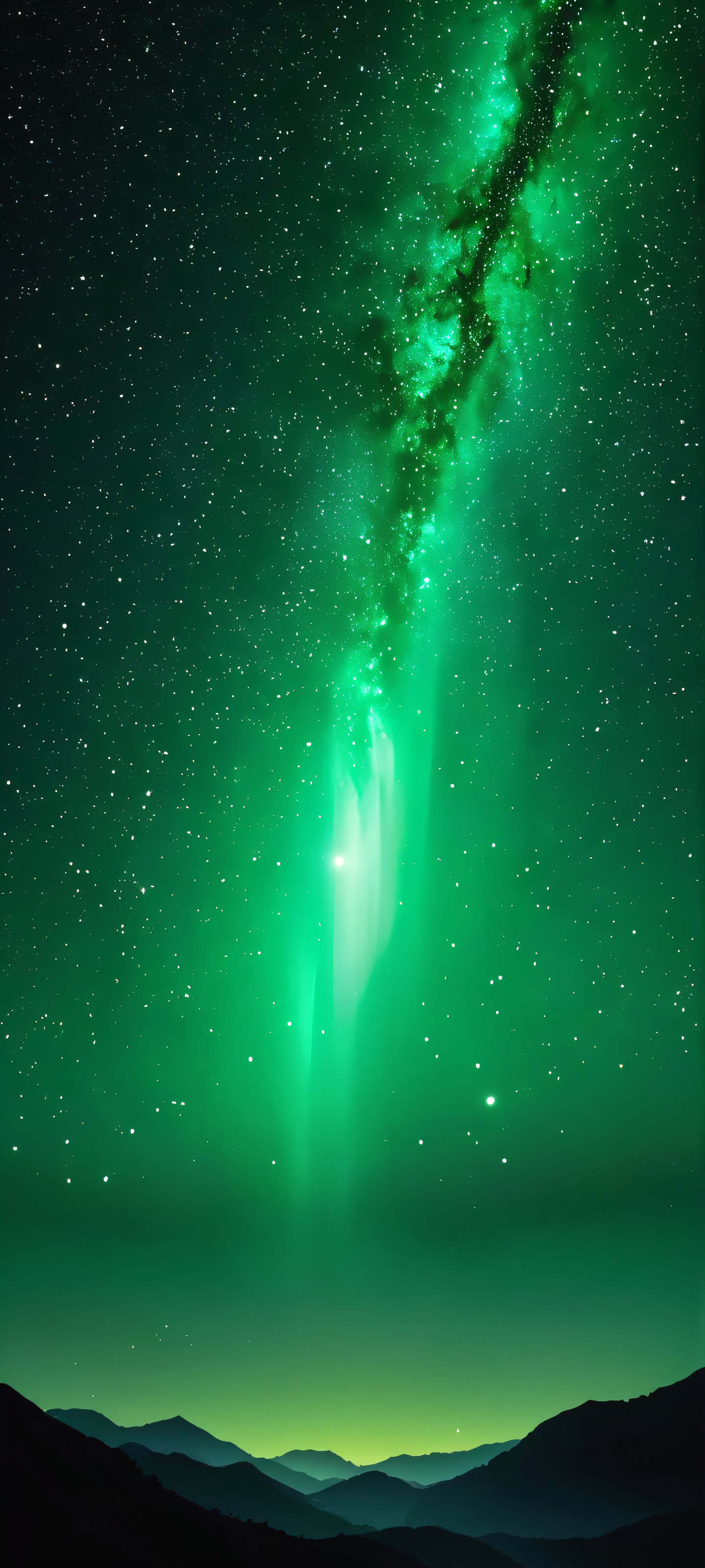 iPhone and Android users will love this stunning vertical wallpaper of the stars at night, perfectly capturing a moonlit sky with green and black hues.