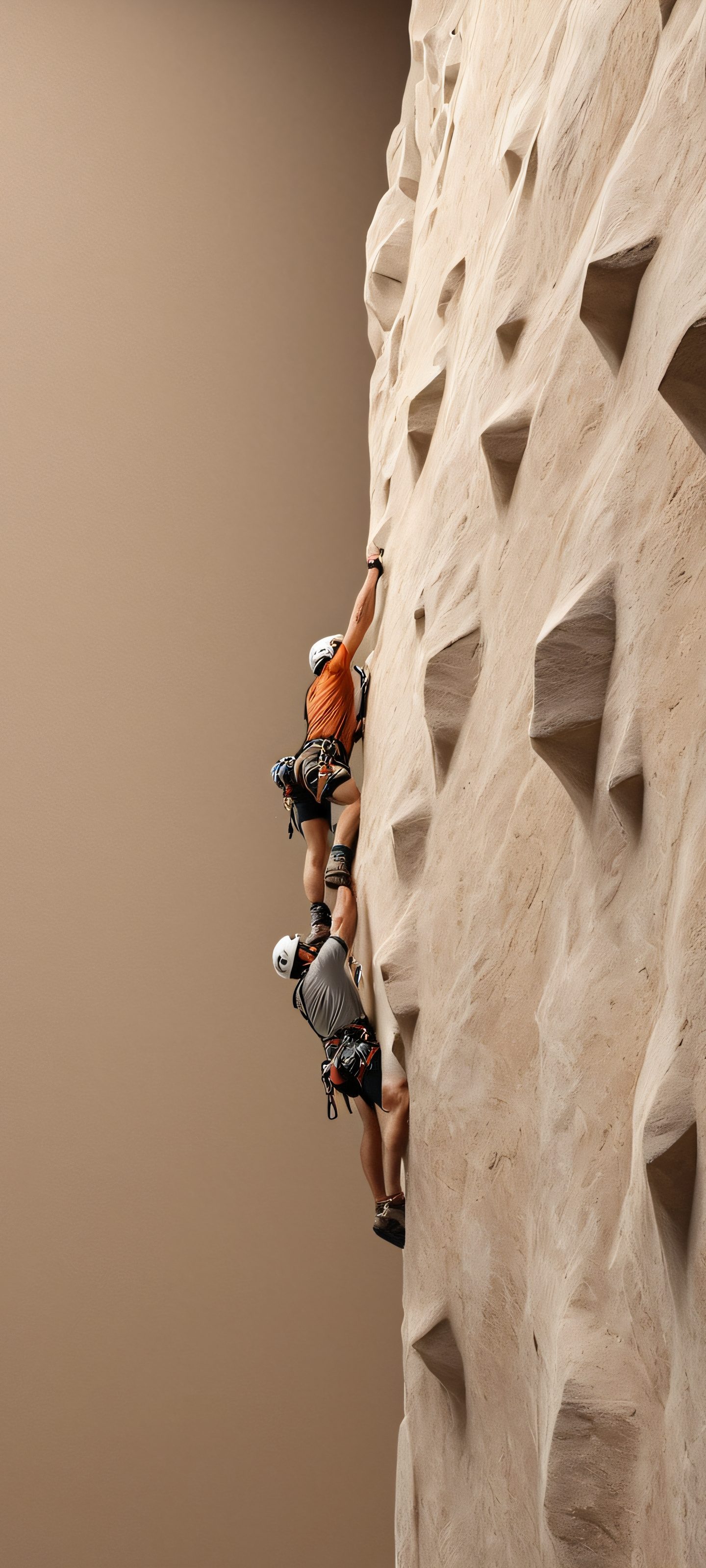 A majestic iPhone and Android wallpaper featuring a climber's ascent up a realistic, soft-brown mountain, perfectly optimized for your mobile home screen.