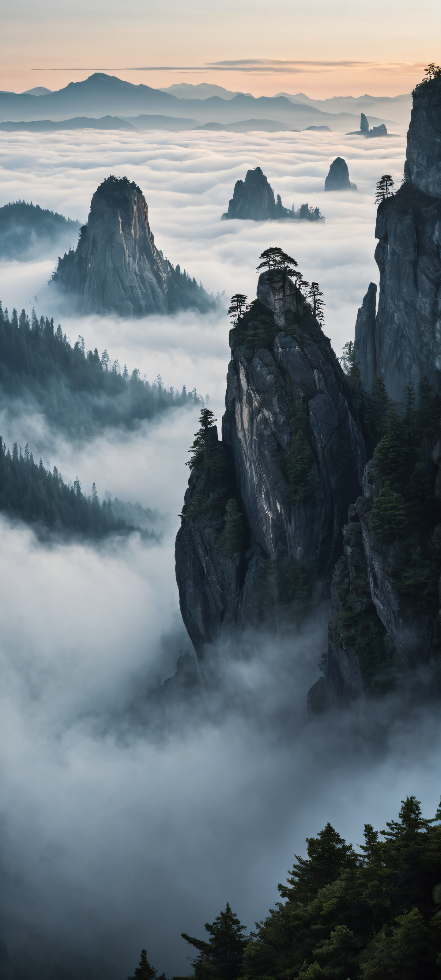 Perfectly optimized for your iPhone, Samsung Galaxy, or Android home screen, this breathtaking vertical portrait artwork features intricate micro-details of mystical forms emerging from the misty morning fog. The top half is designed to provide ample space for UI widgets, while the bottom half is shrouded in a mystifying fog that draws you in.