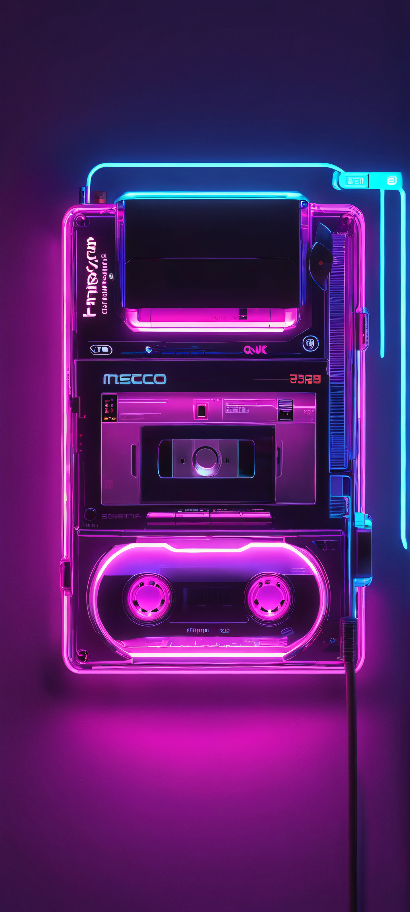 Elevate your mobile phone’s home screen with this stunning, flat vector masterpiece. This 2K QHD resolution design is specifically optimized for iPhone, Samsung Galaxy, and Android devices, ensuring an immersive visual experience on any device. The neon glow of the cassette player adds a touch of retro charm to your digital life.