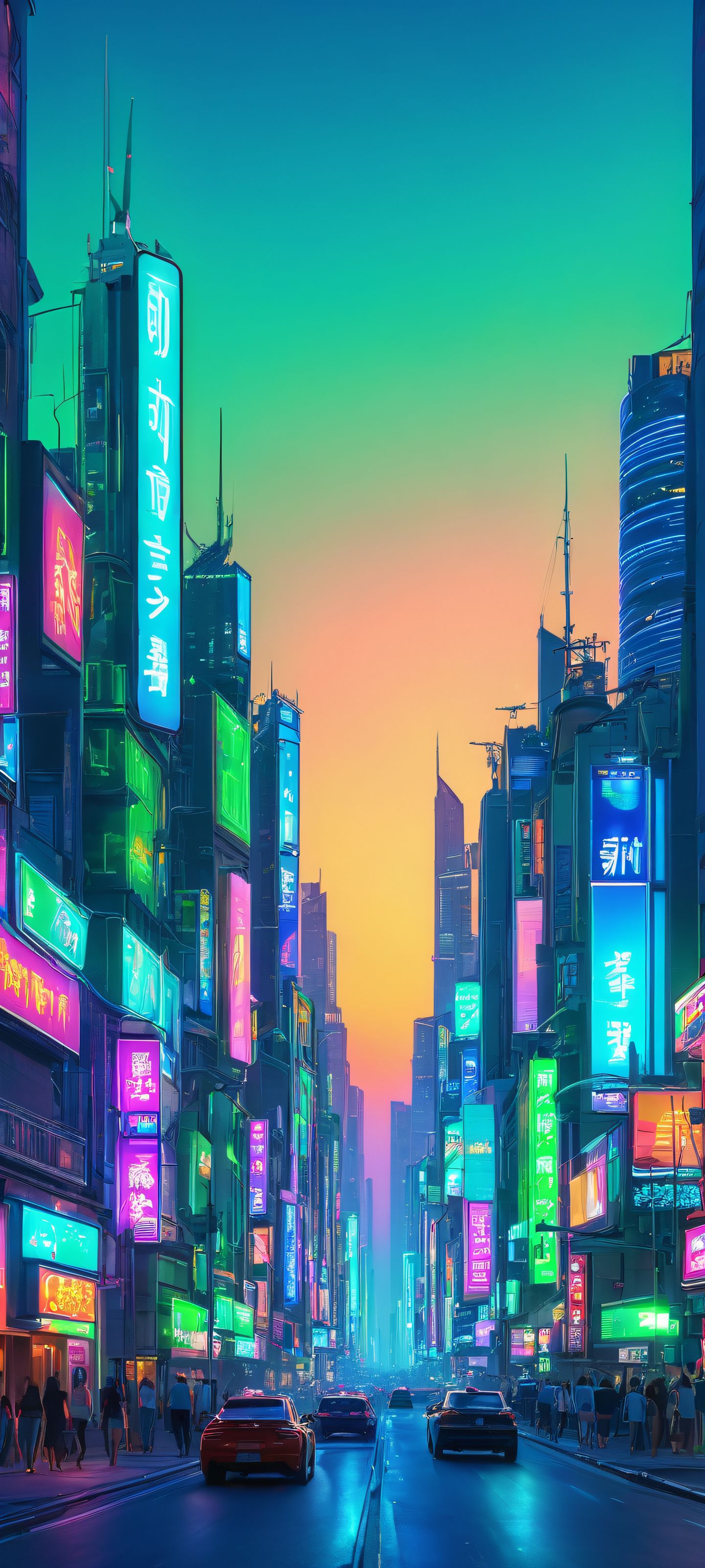Breathtaking cityscape at night with neon lights and vibrant colors, perfect for iPhone/Android home screens.