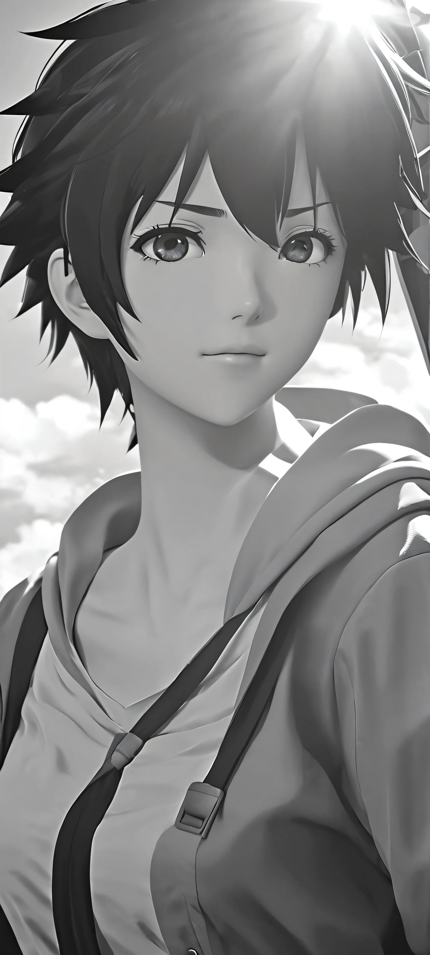 Anime-inspired video game characters basking in a warm iPhone/Android-friendly daytime scene with bright blue and grayscale hues.