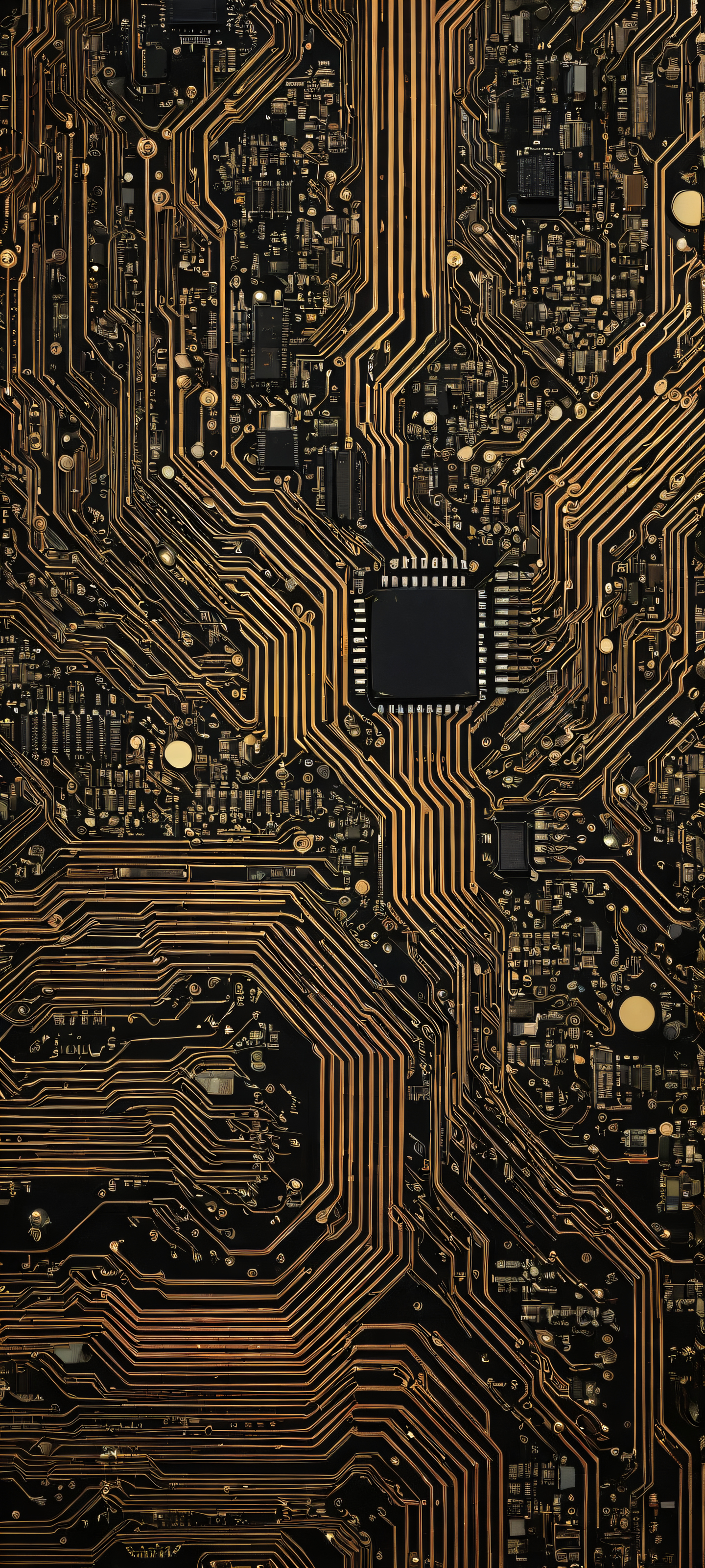 Vintage computer circuitry artwork on a sleek black background, perfect for iPhone/Android phone screens.