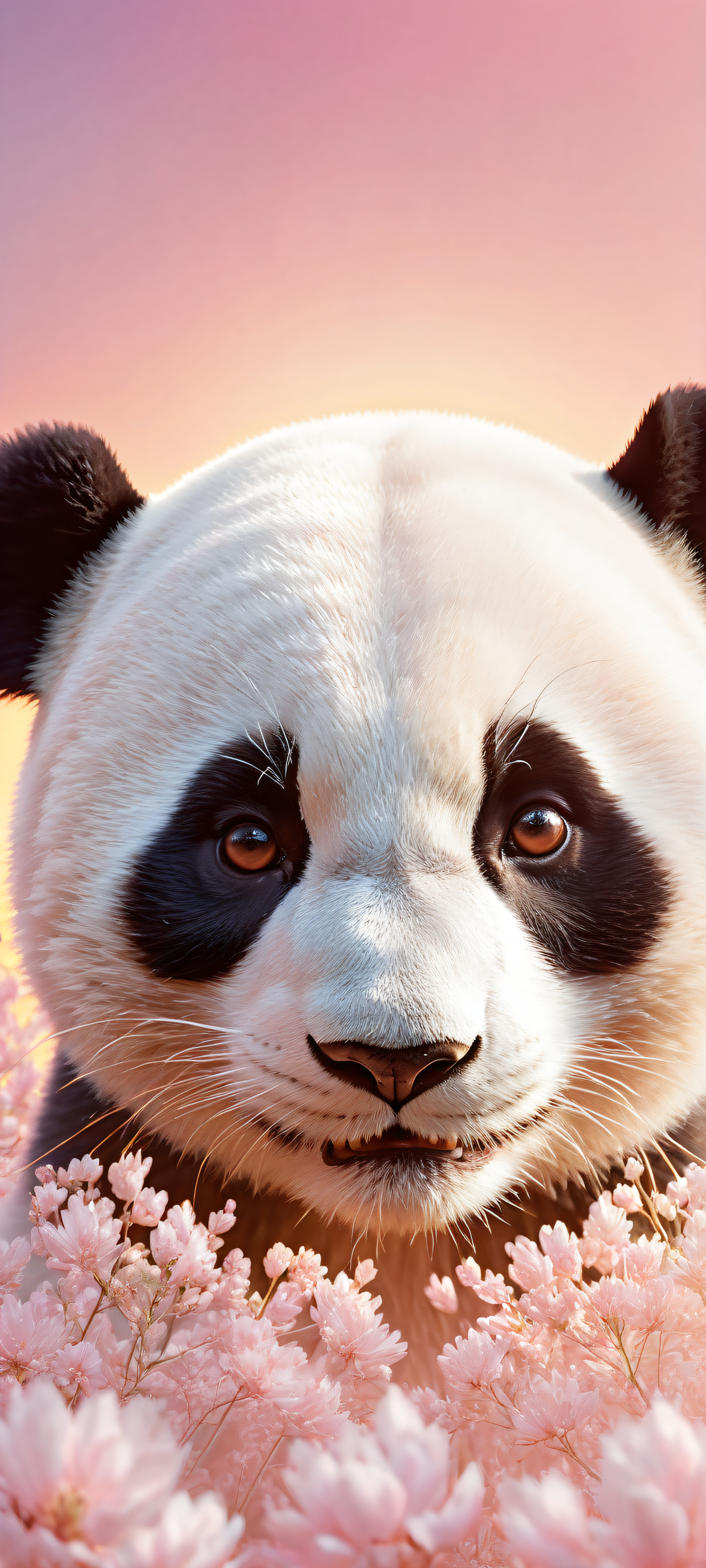 A breathtaking vertical portrait artwork of Panda Boy placed in the lower-middle with intricate micro-details of his adorable smiling face, Perfectly clean and empty top half with vast pure void, accompanied by a serene and peaceful background, Award-winning digital art with stunning visual impact and pristine clarity, Ethereal lighting with radiant, brilliant colors, ray-traced reflections, and pristine clarity, as if lit from within, Soft pastel hues of gentle pink and creamy white, evoking feelings of warmth and innocence, ethereal lighting, radiant, brilliant colors, ray traced reflections, pristine clarity, portrait composition, centered subject in the lower middle, perfectly clean and smooth top half for UI, extreme depth of field blurred background, highly textured surfaces, intricate micro-details, physically based rendering, award-winning digital art, epic breathtaking scale, stunning visual impact, perfect composition, macOS wallpaper aesthetic, masterpiece, 2K QHD resolution, 9:20 aspect ratio.