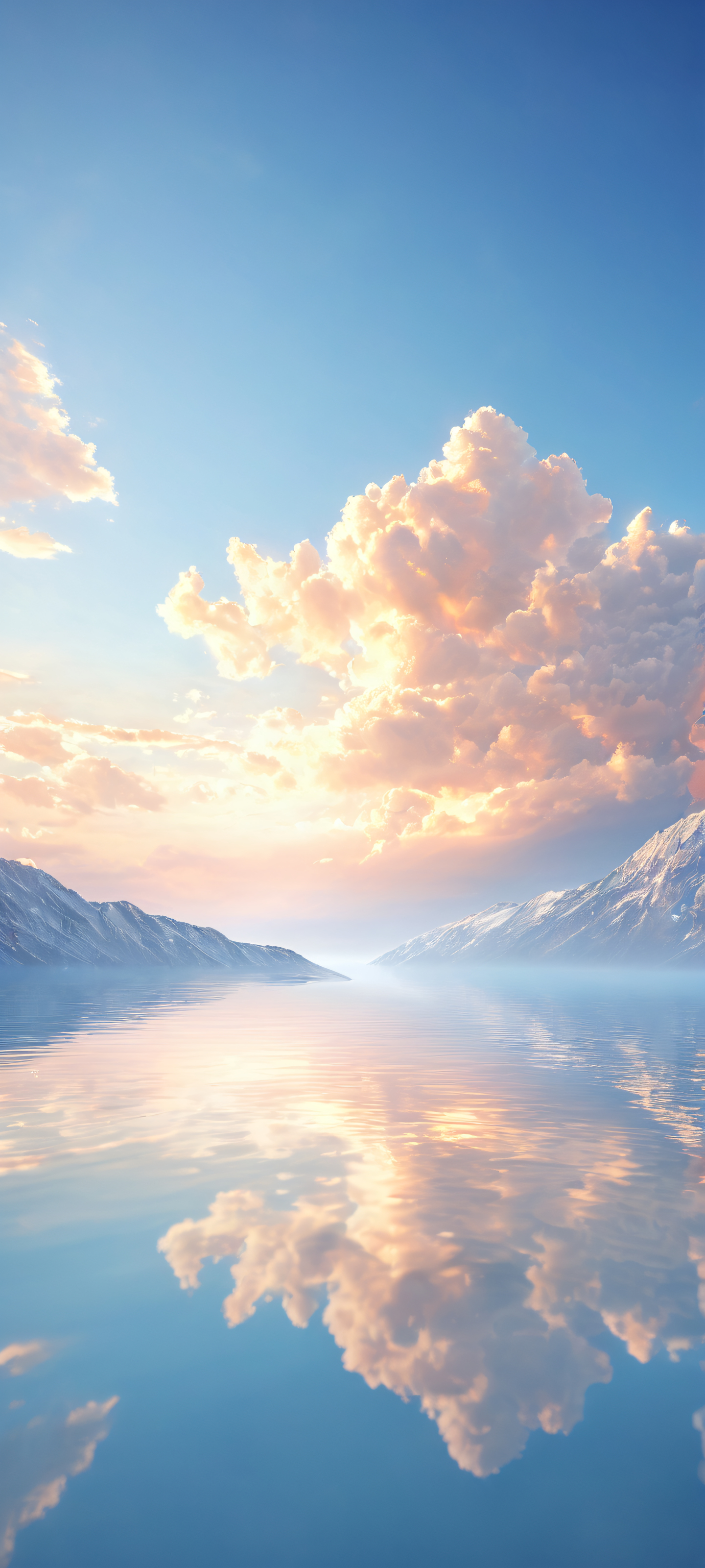 A breathtaking vertical portrait artwork of A delicate cloud placed in the lower-middle with intricate micro-details and extreme depth of field., Perfectly clean and empty top half with vast pure void, allowing for seamless integration with UI widgets., Award-winning digital art, stunning visual impact, and pristine clarity. Flawless execution., Ethereal sunlight casting a warm glow with radiant, brilliant colors and ray-traced reflections, creating an airy atmosphere., Soft pastel hues of sky blue and creamy white, evoking feelings of peacefulness and tranquility., ethereal lighting, radiant, brilliant colors, ray traced reflections, pristine clarity, portrait composition, centered subject in the lower middle, perfectly clean and smooth top half for UI, extreme depth of field blurred background, highly textured surfaces, intricate micro-details, physically based rendering, award-winning digital art, epic breathtaking scale, stunning visual impact, perfect composition, macOS wallpaper aesthetic, masterpiece, 2K QHD resolution, 9:20 aspect ratio.