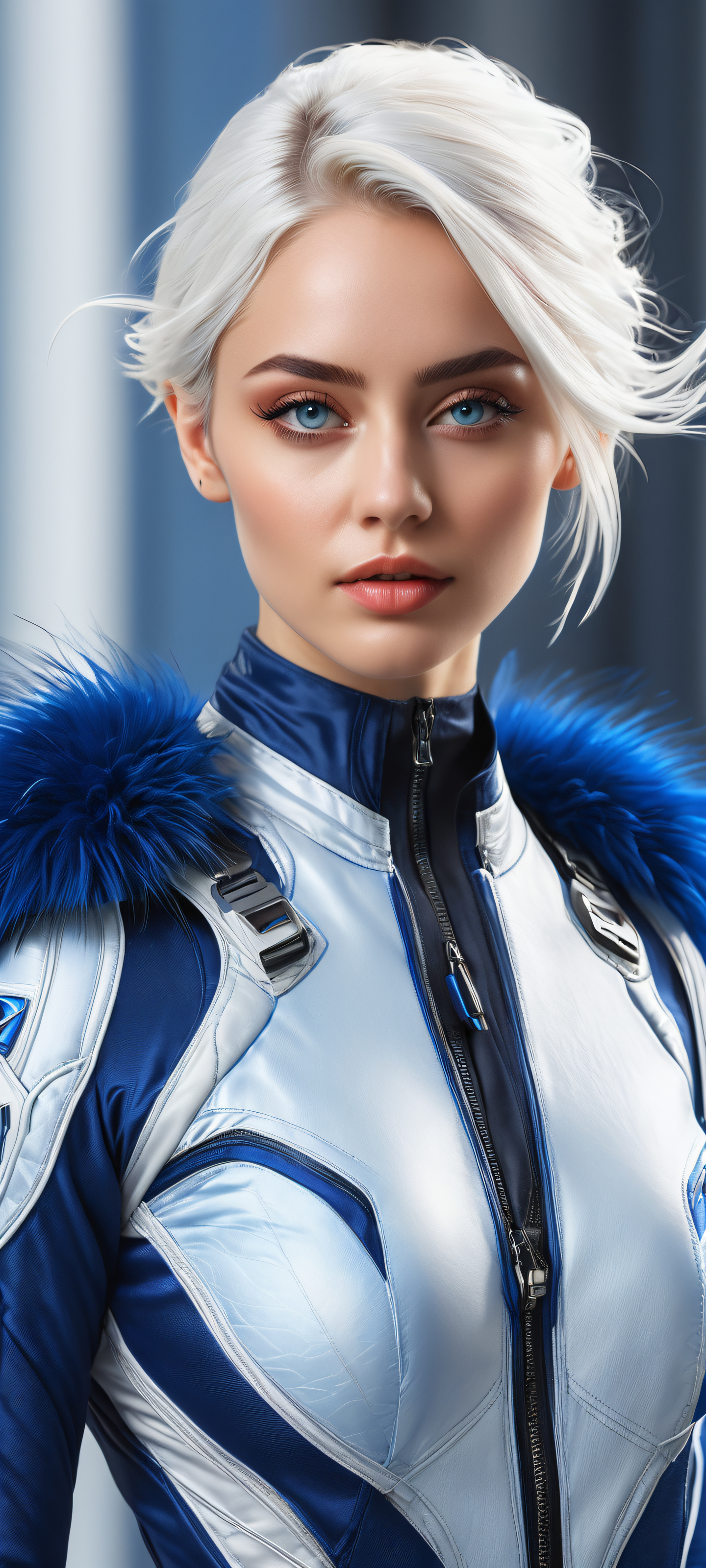 A breathtaking vertical portrait artwork of Krystal, the Lylat System’s renowned pilot, placed in the lower-middle with intricate micro-details on her sleek Arwing suit, drawing attention to the precision-cut black outline and striking blue fur., A perfectly clean and empty top half with vast pure void, allowing for an unobstructed view of the stunning subject matter, while the lower half transitions seamlessly into a deep blue hue, evoking a sense of depth and mystery, Award-winning digital art, pristine clarity, showcasing a masterclass in texture and scale, blending effortlessly with the ethereal atmosphere, Etéreo, radiant, and brilliant, with ray-traced reflections that seem to dance across Krystal’s suit, creating an otherworldly glow that draws the viewer in, #3498DB #FFFFFF #2F4F7F, ethereal lighting, radiant, brilliant colors, ray traced reflections, pristine clarity, portrait composition, centered subject in the lower middle, perfectly clean and smooth top half for UI, extreme depth of field blurred background, highly textured surfaces, intricate micro-details, physically based rendering, award-winning digital art, epic breathtaking scale, stunning visual impact, perfect composition, macOS wallpaper aesthetic, masterpiece, 2K QHD resolution, 9:20 aspect ratio.