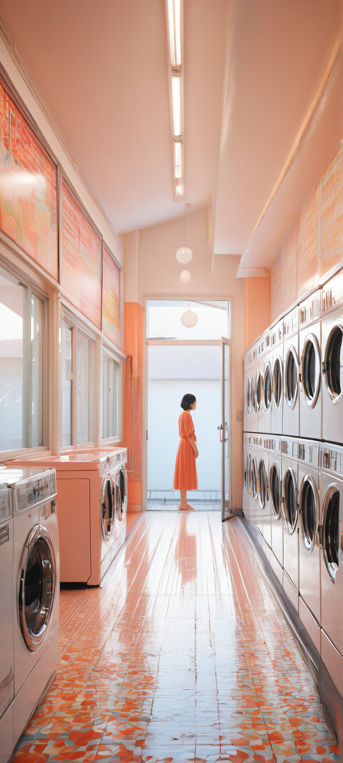 Immerse yourself in the breathtakingly beautiful ‘Soyo’s Laundromat Moment’! This stunning piece of award-winning digital art is designed to perfectly complement your iPhone, Galáxia Samsung, ou tela inicial do Android. Enjoy the serene atmosphere and ethereal lighting, featuring soft colors and ray-traced reflections that will transport you to a tranquil world.