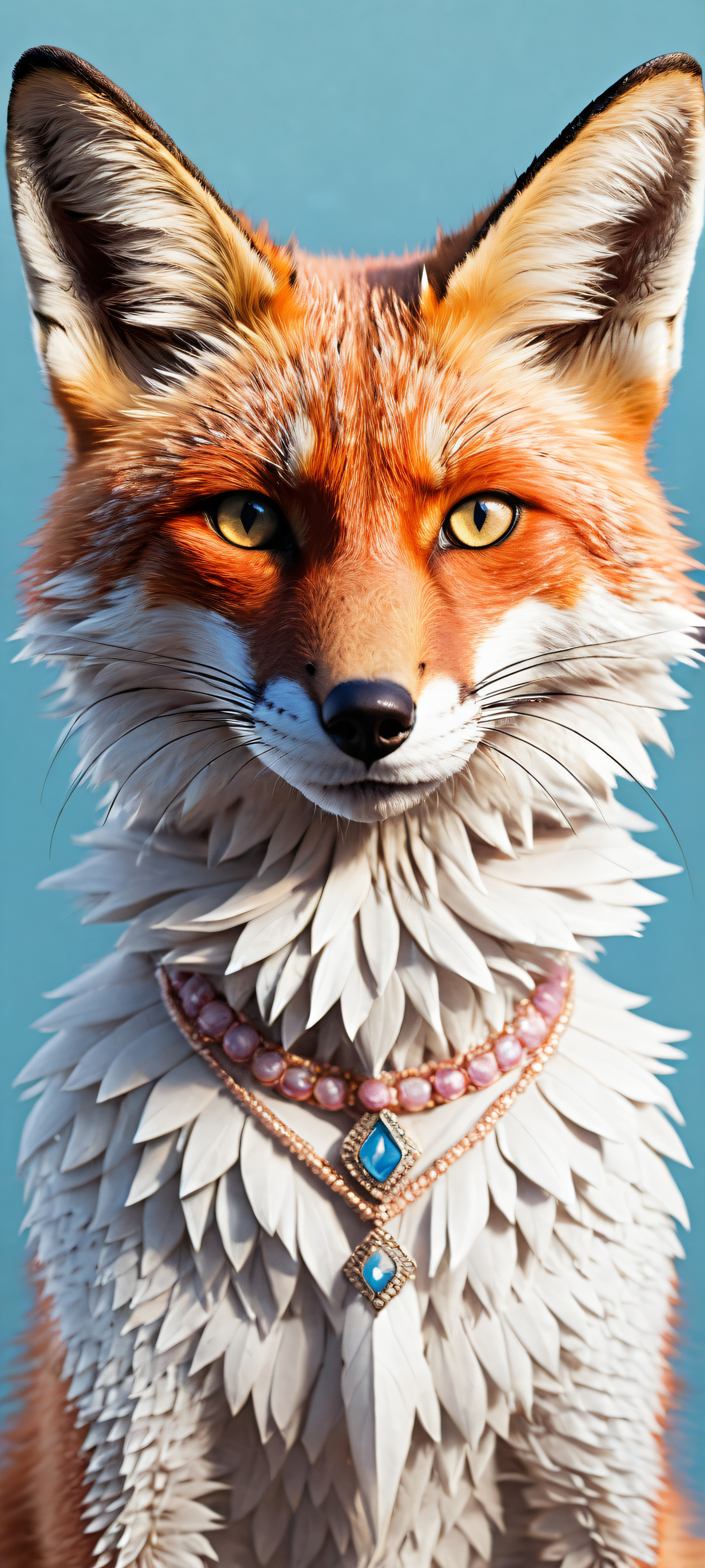 A breathtaking vertical portrait artwork of A whimsical anthro fox, placed in the lower-middle with intricate micro-details of its fur and clothing, drawing the viewer’s eye., A perfectly clean and empty top half with vast pure void, giving the user ample space for UI widgets and breathing room., Award-winning digital art, stunning visual impact, with a focus on precision and crisp lines. The artwork is rendered with pristine clarity, showcasing the artist’s skill and attention to detail., Ethereal lighting with soft, radiant colors that create a sense of warmth and serenity. The lighting is subtle yet impactful, highlighting the subject without overpowering it., [‘Pastel pink’, ‘Cream’, ‘Misty blue’], ethereal lighting, radiant, brilliant colors, ray traced reflections, pristine clarity, portrait composition, centered subject in the lower middle, perfectly clean and smooth top half for UI, extreme depth of field blurred background, highly textured surfaces, intricate micro-details, physically based rendering, award-winning digital art, epic breathtaking scale, stunning visual impact, perfect composition, macOS wallpaper aesthetic, masterpiece, 2K QHD resolution, 9:20 aspect ratio.
