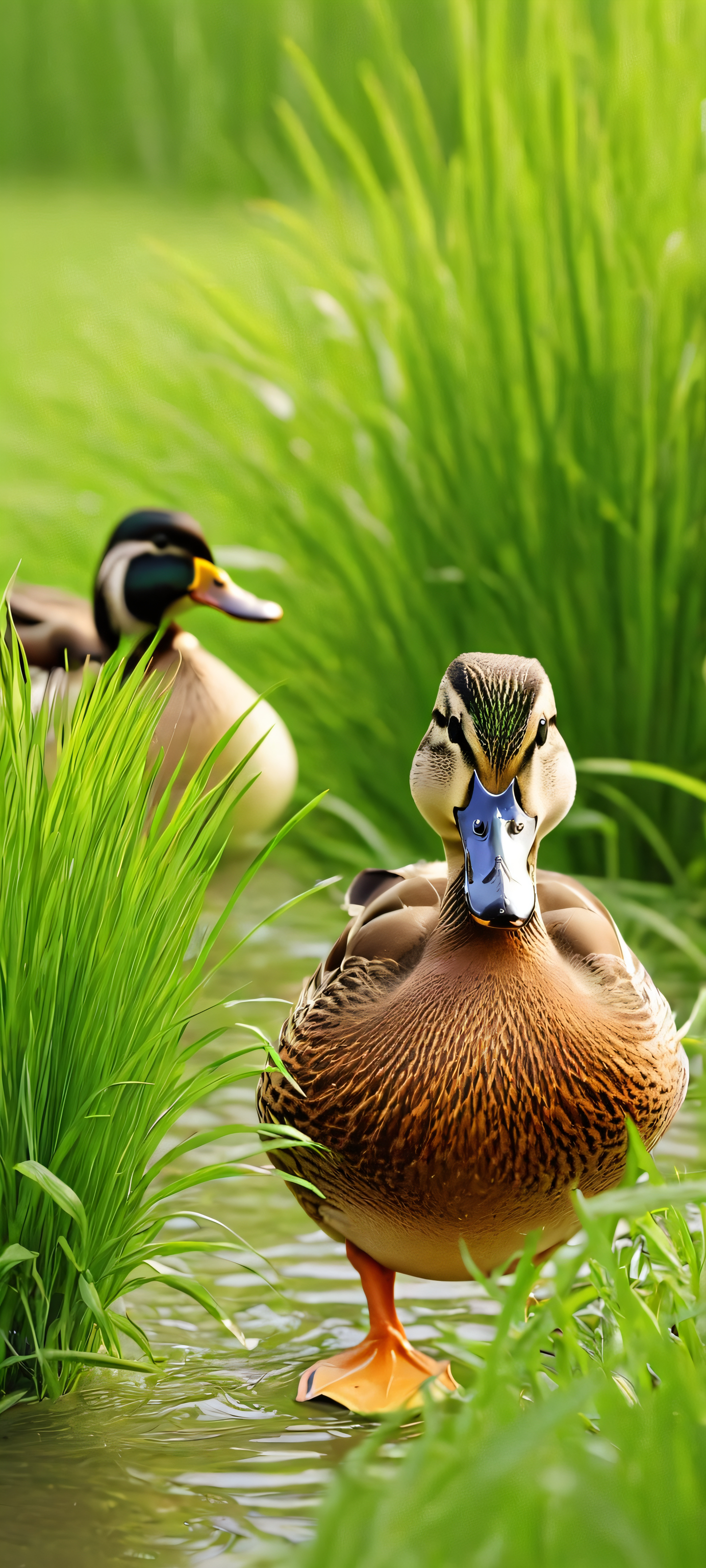 Elevate your mobile experience with this stunning vertical wallpaper featuring the charm of quacking ducks amidst vibrant grass. This masterpiece is specifically designed to be perfectly optimized for iPhone, Samsung Galaxy, and Android home screens, ensuring an unparalleled visual treat.