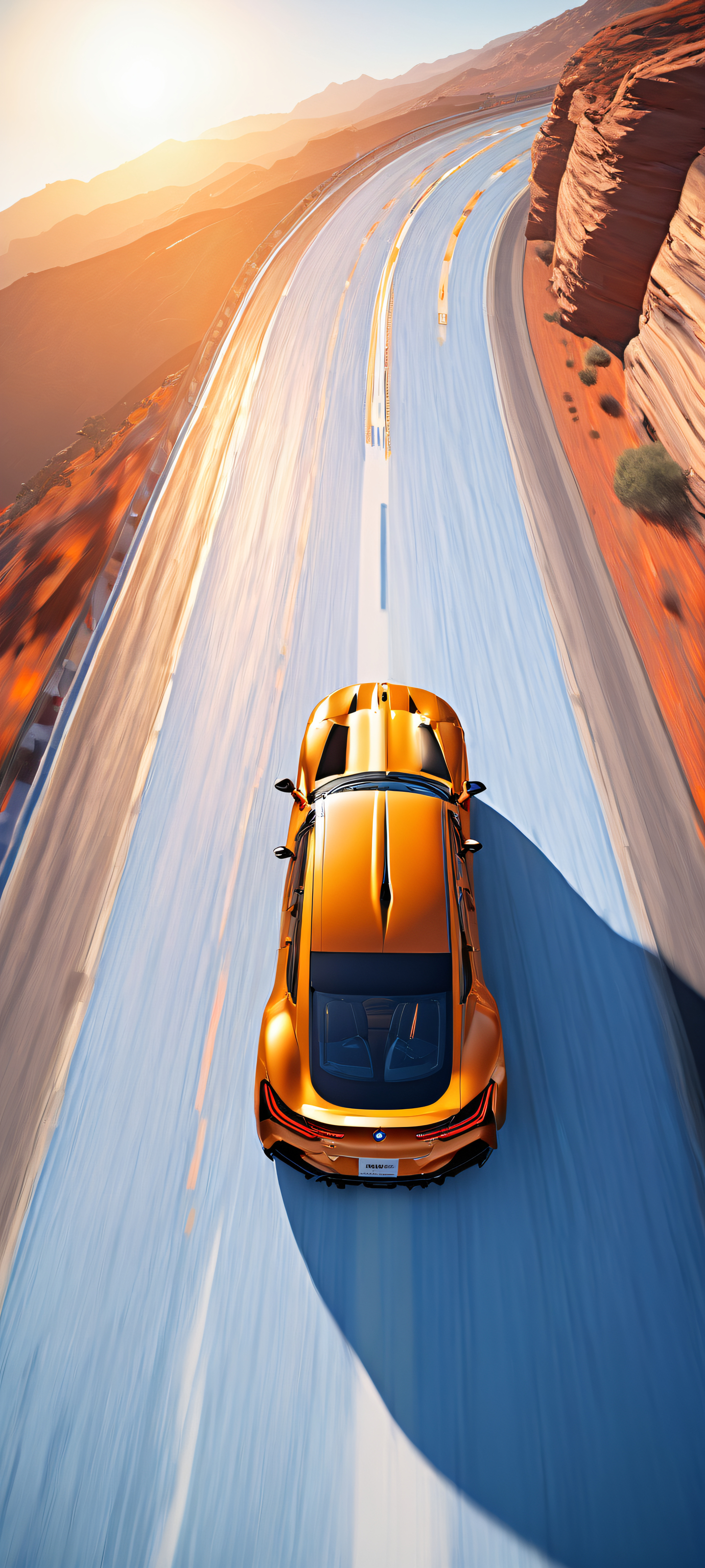 A breathtaking vertical portrait artwork of A sleek BMW vehicle placed in the lower-middle with intricate micro-details of racing tracks and motion blur effects., Perfectly clean and empty top half with vast pure void, allowing for unobstructed UI breathing space, while the lower half features an immersive driving scene from Forza Horizon 5., Award-winning digital art with stunning visual impact, showcasing pristine clarity and attention to detail, reminiscent of a high-end video game like Forza Horizon 5., Ethereal lighting with radiant colors, ray traced reflections, and impeccable clarity, as if the scene was rendered in 8K resolution., Dominant color palette featuring shades of blue, with touches of orange and yellow, evoking a sense of excitement and thrill, reminiscent of a trending Forza Horizon 5 screenshot., ethereal lighting, radiant, brilliant colors, ray traced reflections, pristine clarity, portrait composition, centered subject in the lower middle, perfectly clean and smooth top half for UI, extreme depth of field blurred background, highly textured surfaces, intricate micro-details, physically based rendering, award-winning digital art, epic breathtaking scale, stunning visual impact, perfect composition, macOS wallpaper aesthetic, masterpiece, 2K QHD resolution, 9:20 aspect ratio.