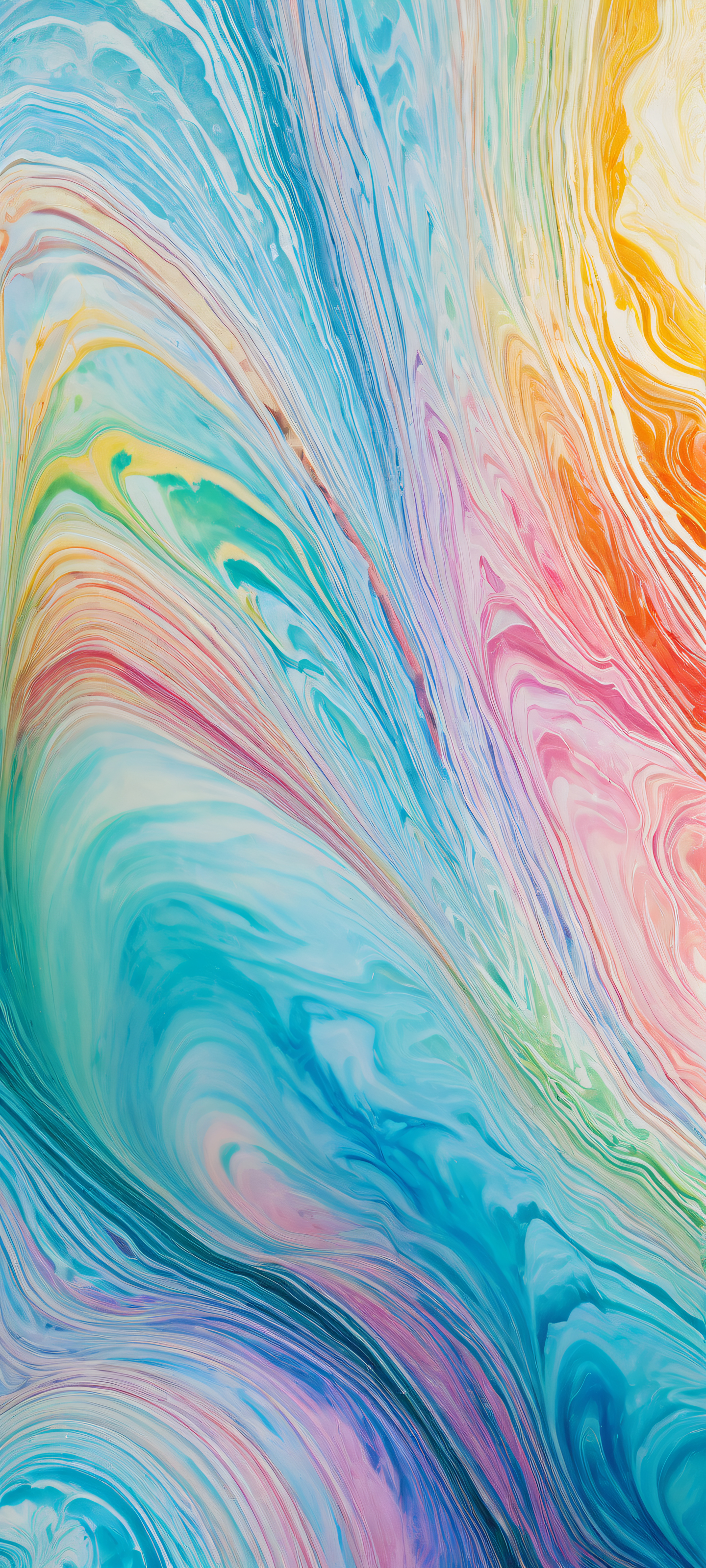 A breathtaking vertical portrait artwork of A glass marble with a rainbow-colored interior falls from the sky, placed in the lower-middle of the screen with insane micro-details, revealing the intricate patterns and colors within., The top half is absolutely clean, smooth, and uncluttered for UI widgets, while the bottom half showcases a vast pure void with perfectly rippled water reflecting the vibrant colors of the marble as it sinks into the depths., Award-winning digital art, pristine clarity, boasting stunning visual impact and an Apple UI level texture & scale., Ethereal lighting shines down from above, casting a brilliant glow on the entire scene. The light source is radiant and bright, with subtle ray traced reflections adding depth and dimensionality to the composition., Dominant colors include a palette of pastel hues such as pale blue, pink, yellow, green, and orange, blending seamlessly into one another to create a visually stunning and uplifting atmosphere., ethereal lighting, radiant, brilliant colors, ray traced reflections, pristine clarity, portrait composition, centered subject in the lower middle, perfectly clean and smooth top half for UI, extreme depth of field blurred background, highly textured surfaces, intricate micro-details, physically based rendering, award-winning digital art, epic breathtaking scale, stunning visual impact, perfect composition, macOS wallpaper aesthetic, masterpiece, 2K QHD resolution, 9:20 aspect ratio.