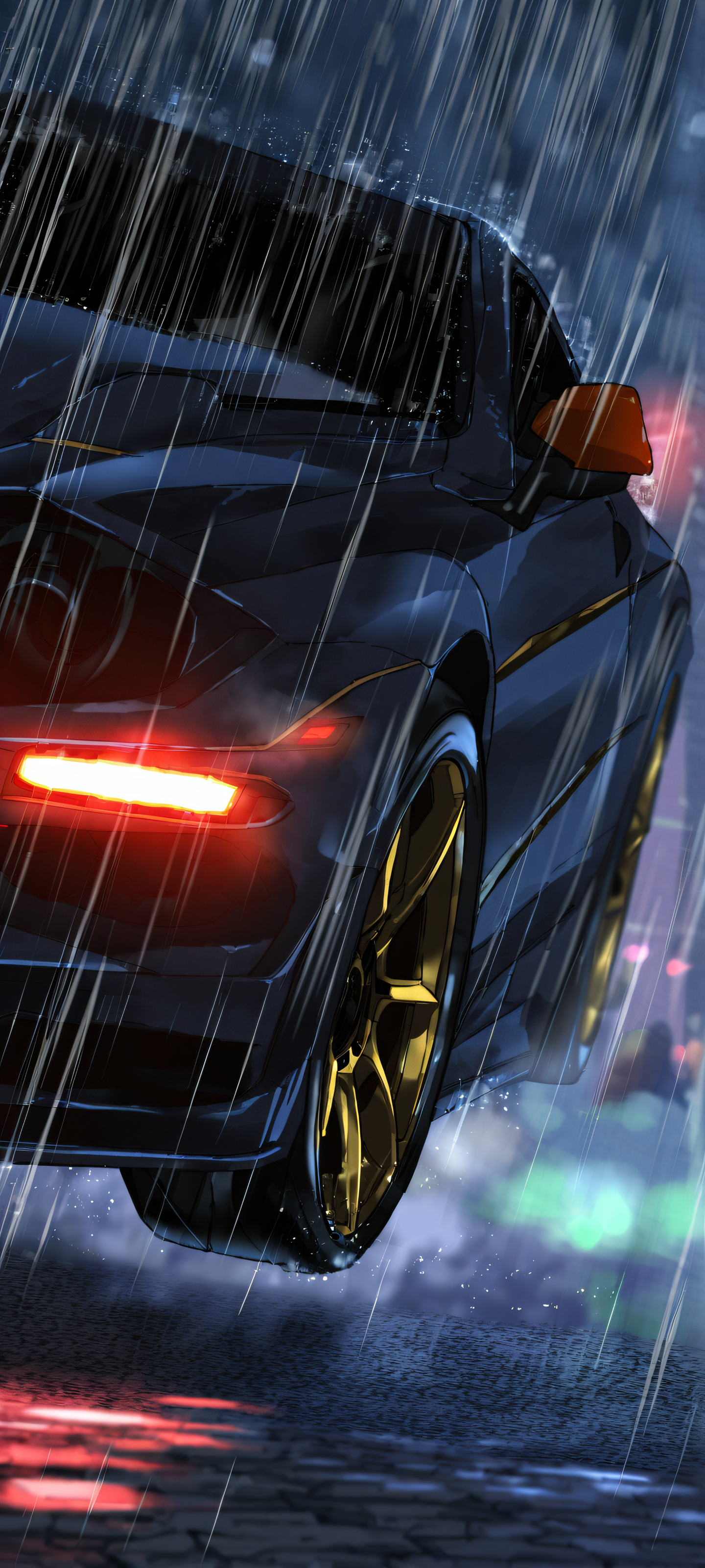 Elevate your mobile experience with this stunning vertical wallpaper. Perfectly optimized for iPhone, Samsung Galaxy, and Android home screens, this masterpiece captures the drama of a rainy night drive. The 2K QHD resolution brings out every detail, from the vehicle’s sleek design to the raindrops glistening in the brake glow.