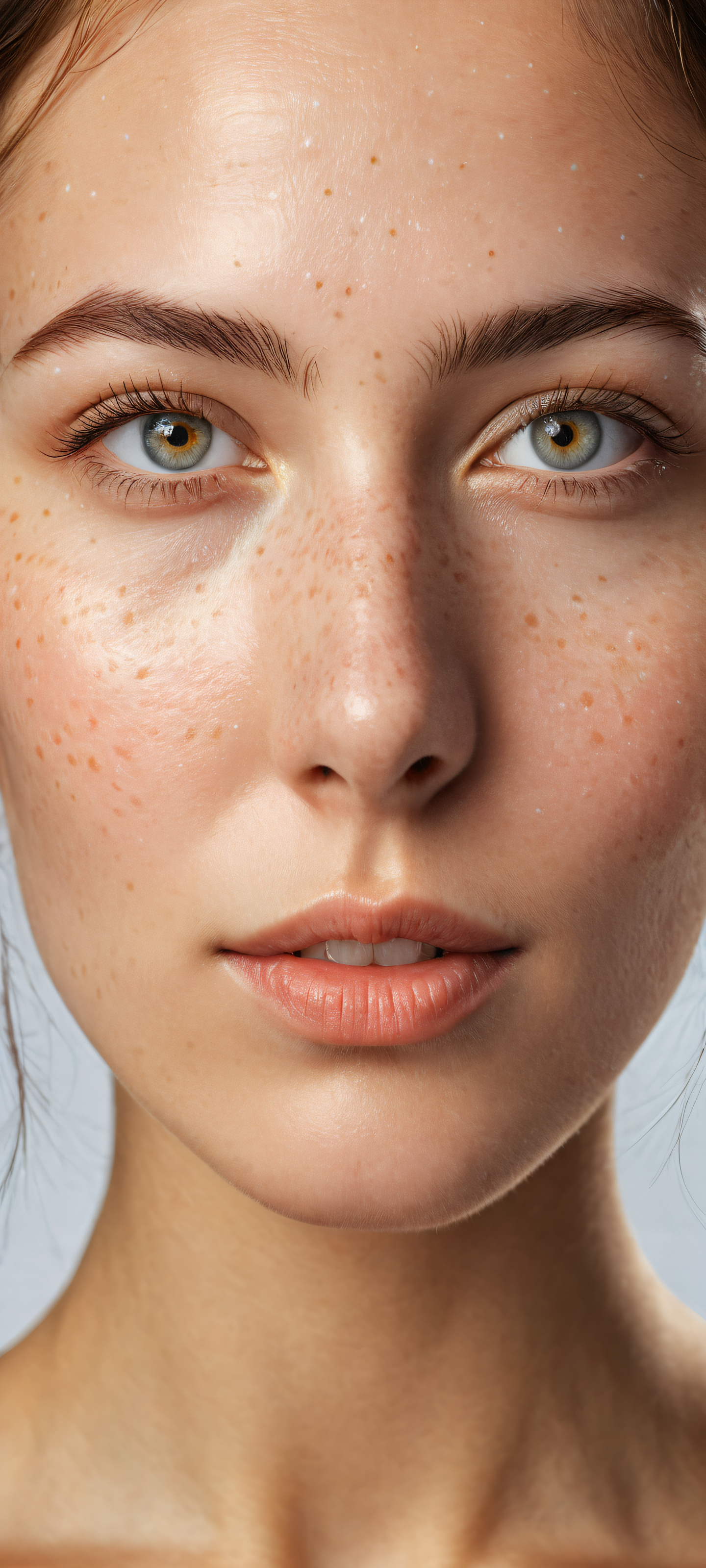 Perfectly optimized for your iPhone, Samsung Galaxy, or Android home screen. This stunning vertical artwork features a realistic portrait of a person, set against a vast empty top half that seamlessly integrates with UI elements. The subtle expressions and delicate freckles on the subject’s face are rendered in breathtaking detail, while the softbox lighting adds warmth and comfort to this award-winning digital art.