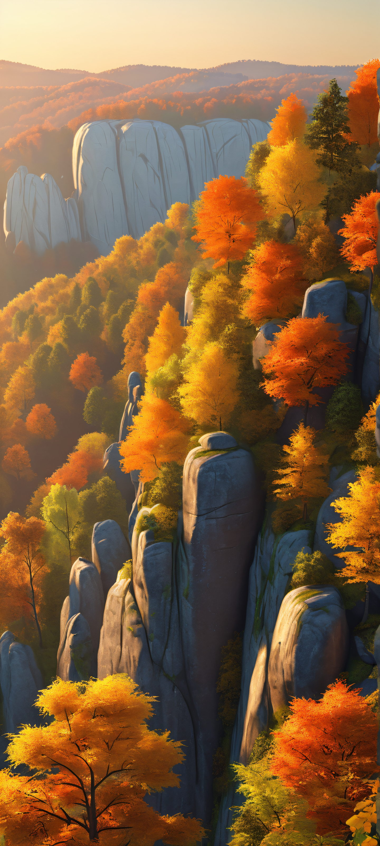Experience the serene beauty of Rock City’s autumn landscape, expertly optimized for your iPhone, Samsung Galaxy, or Android home screen. This stunning vertical mobile wallpaper showcases the perfect harmony between nature’s warmth and technology’s sleek design.
