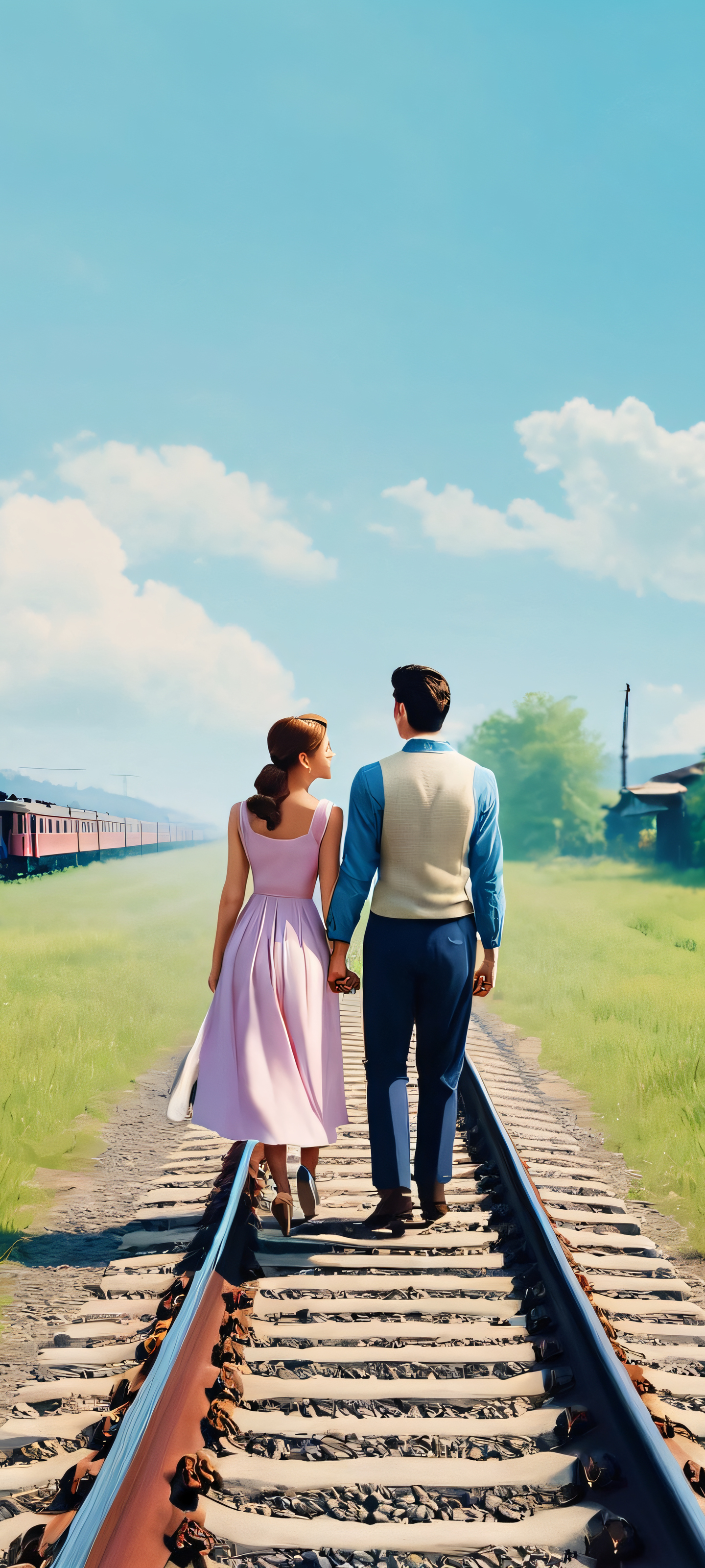Romantic Railway Moment 2K Mobile Background Free Download:
