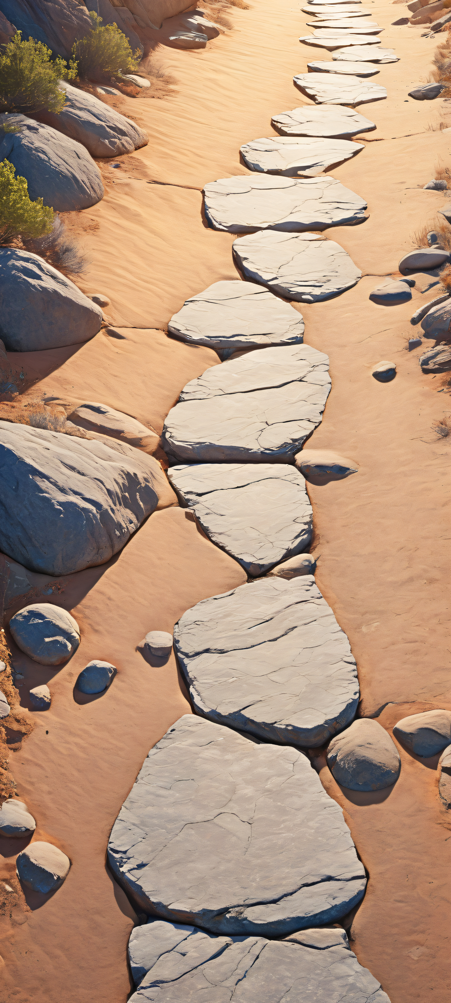 Immerse yourself in this breathtaking vertical portrait artwork of Rugged Path, perfectly optimized for your iPhone, Samsung Galaxy, or Android home screen. The intricately detailed rocks and textures in the lower-middle gradually give way to a serene 8K resolution sky with clouds drifting lazily across, creating an epic breathtaking visual impact.
