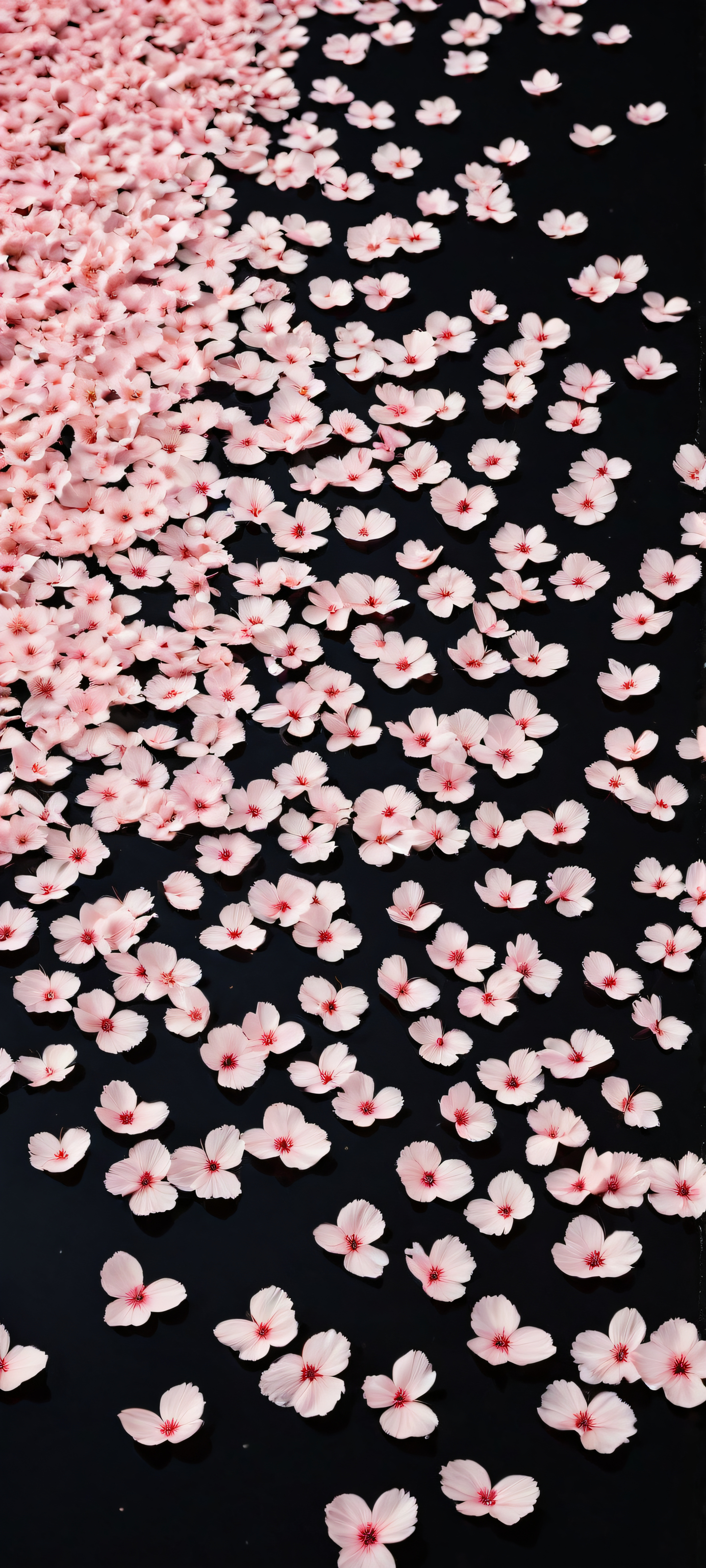 A breathtaking vertical portrait artwork of Sakura petals placed in the lower-middle with intricate micro-details, dancing in the wind., Perfectly clean and empty top half with vast pure void, simple black background with reflective floor., Award-winning digital art, pristine clarity, with stunning visual impact., Deep perfect blacks with striking crisp contrast, elegant luminescent accents, no cinematic lighting, [‘Soft Pastel Pinks’, ‘Creamy Whites’], elegant low-key lighting, deep perfect blacks, striking contrast, sleek dark mode aesthetic, luminescent accents, deep rich colors, portrait composition, centered subject in the lower middle, perfectly clean and smooth top half for UI, extreme depth of field blurred background, highly textured surfaces, intricate micro-details, physically based rendering, award-winning digital art, epic breathtaking scale, stunning visual impact, perfect composition, macOS wallpaper aesthetic, masterpiece, 2K QHD resolution, 9:20 aspect ratio.