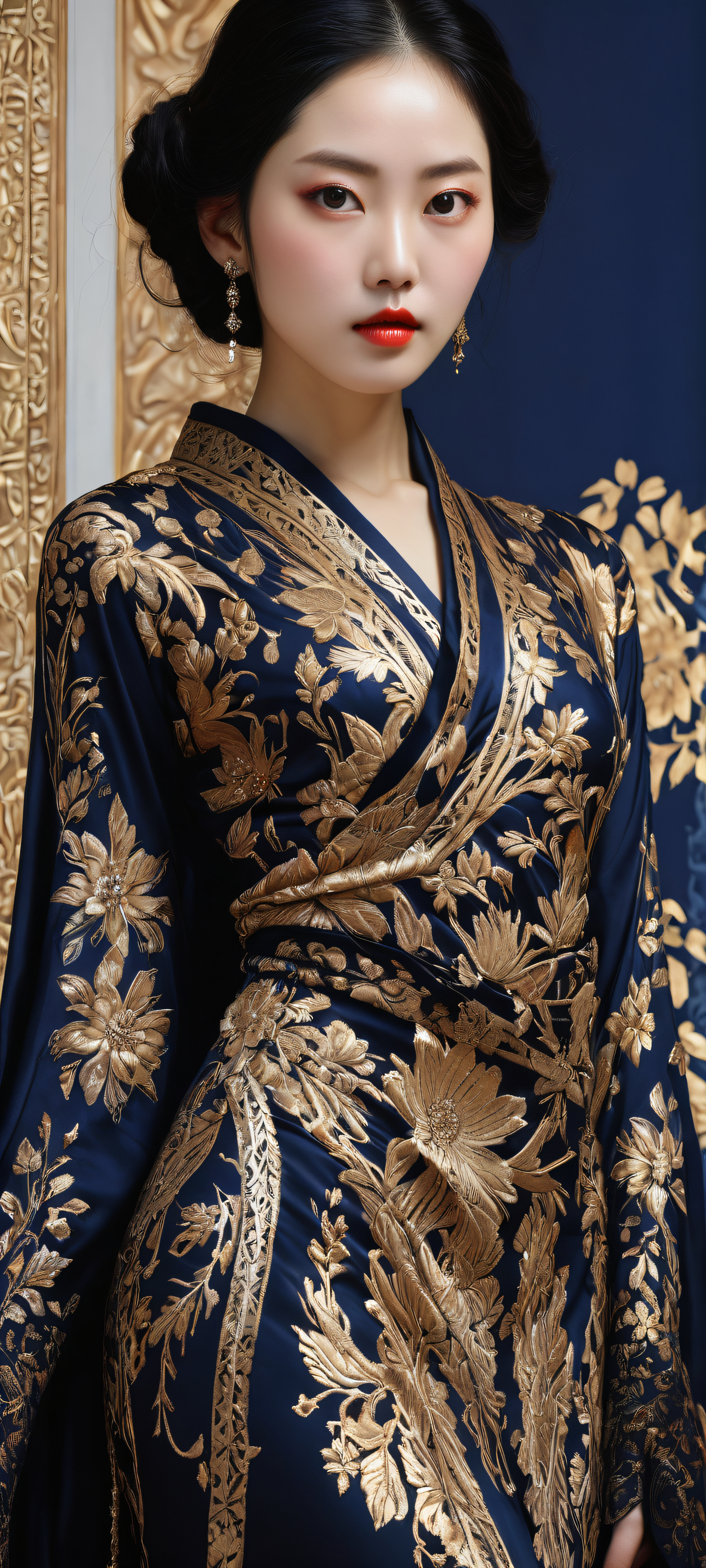 Step into the realm of mystery with this breathtaking vertical portrait artwork of Shizuka. The stark contrast between the pristine top half and the intricately detailed background below creates a visually striking composition, perfect for Apple UI level texture & scale. Let the luminescent accents guide you through the dominant dark colors with hints of crimson and indigo.