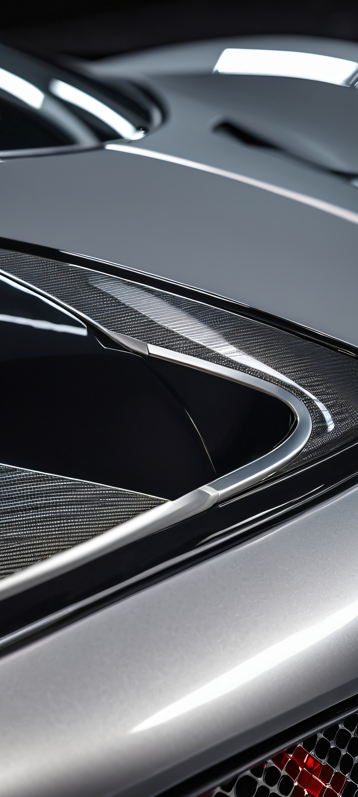 Immerse yourself in the thrill of high-performance driving with this captivating vertical mobile phone wallpaper. Perfectly optimized for iPhone, Samsung Galaxy, and Android home screens, this masterpiece showcases a breathtaking sports car interior in metallic silver with carbon fiber gray accents. Experience the rush of adrenaline as you gaze upon the intricate details and reflections.