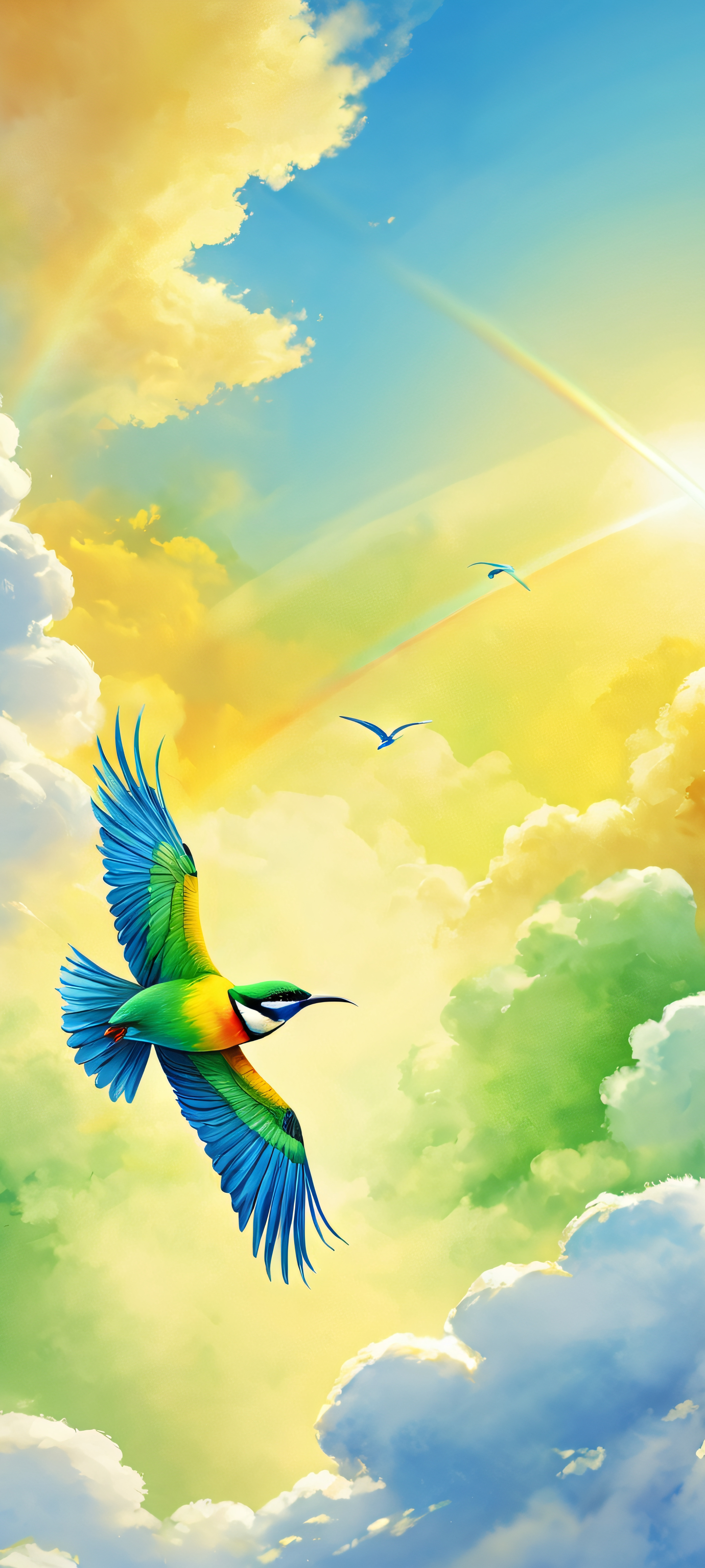 Elevate your mobile experience with this stunning vertical wallpaper. Perfectly optimized for iPhone, Samsung Galaxy, and Android home screens, this masterpiece features a breathtaking bird in flight, set against a soft watercolor sky and wispy clouds. The golden sunlight adds a touch of warmth and depth, making it a truly unique and captivating addition to your mobile setup.