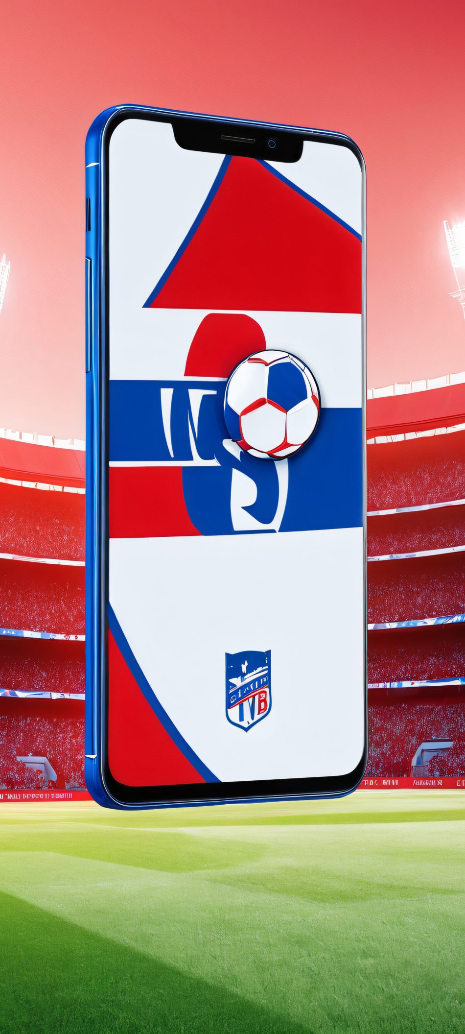 Vibrant stadium scene for iPhone/Android featuring bold red, white, and blue colors