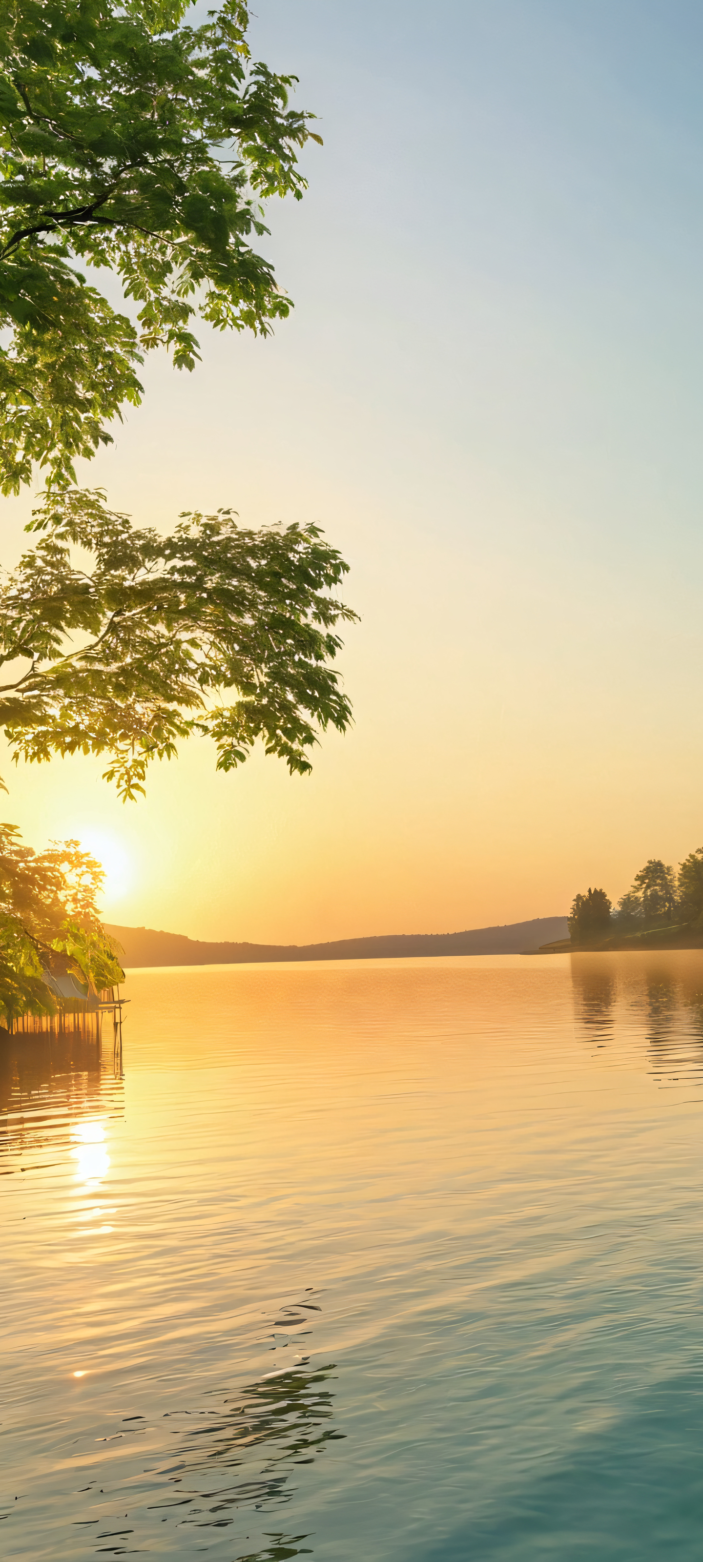 Soft Golden Hour at LakeHouse 2K QHD Mobile Wallpaper