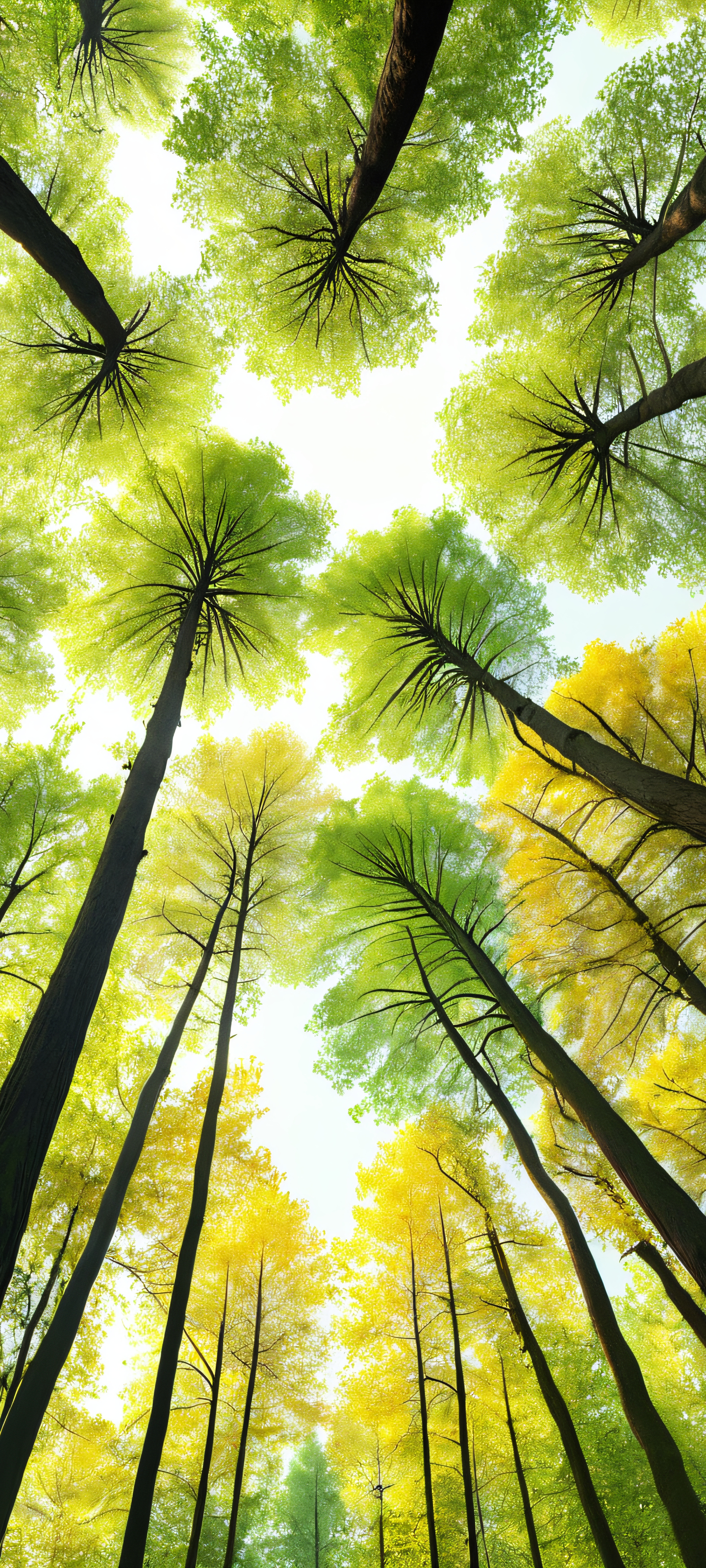 Elevate your mobile experience with this stunning vertical mobile phone wallpaper. Perfectly optimized for iPhone, Samsung Galaxy, and Android home screens, this masterpiece brings the serenity of nature to your fingertips. Soft dappled light filters through the tall trees, creating a breathtakingly realistic scene.