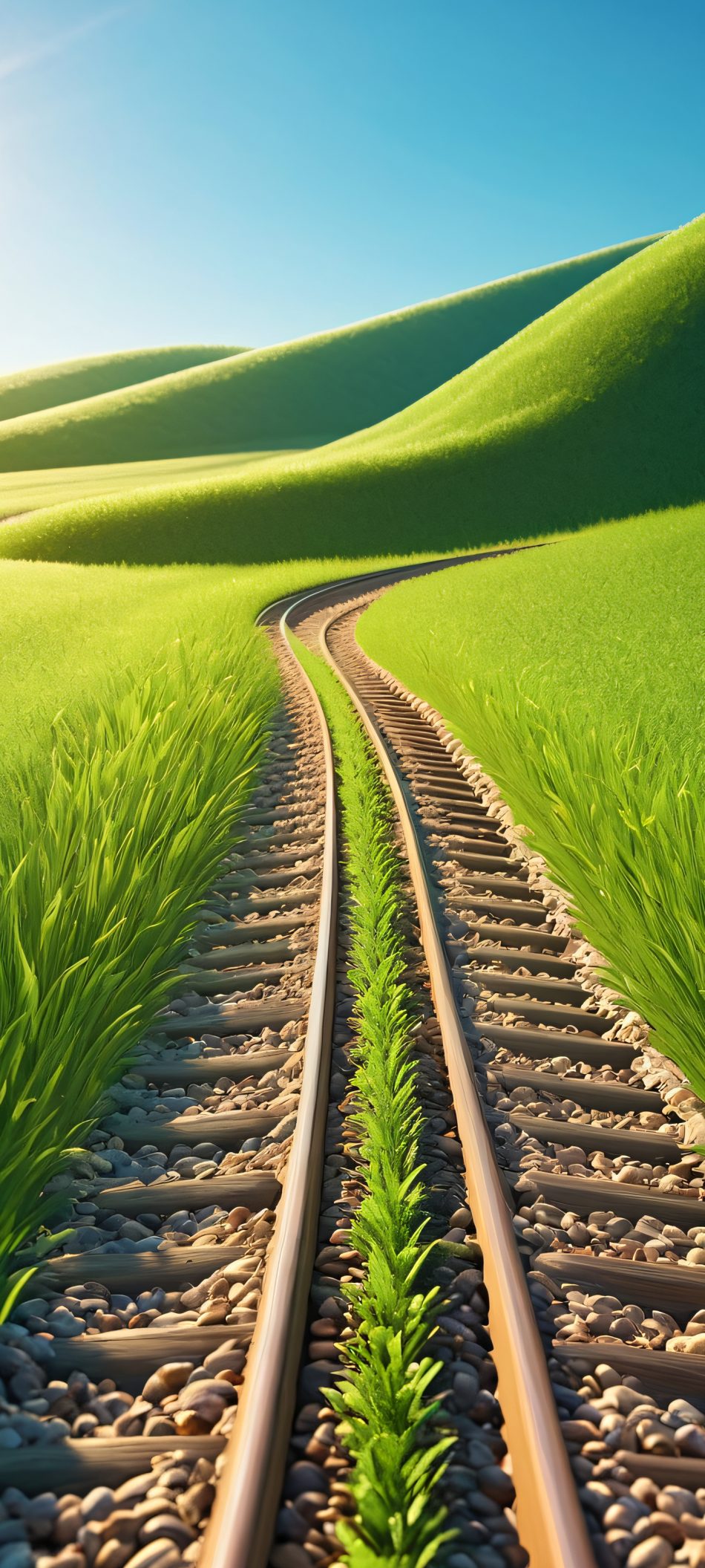 A serene and realistic landscape of a sunny trackside, suitable for iPhone/Android