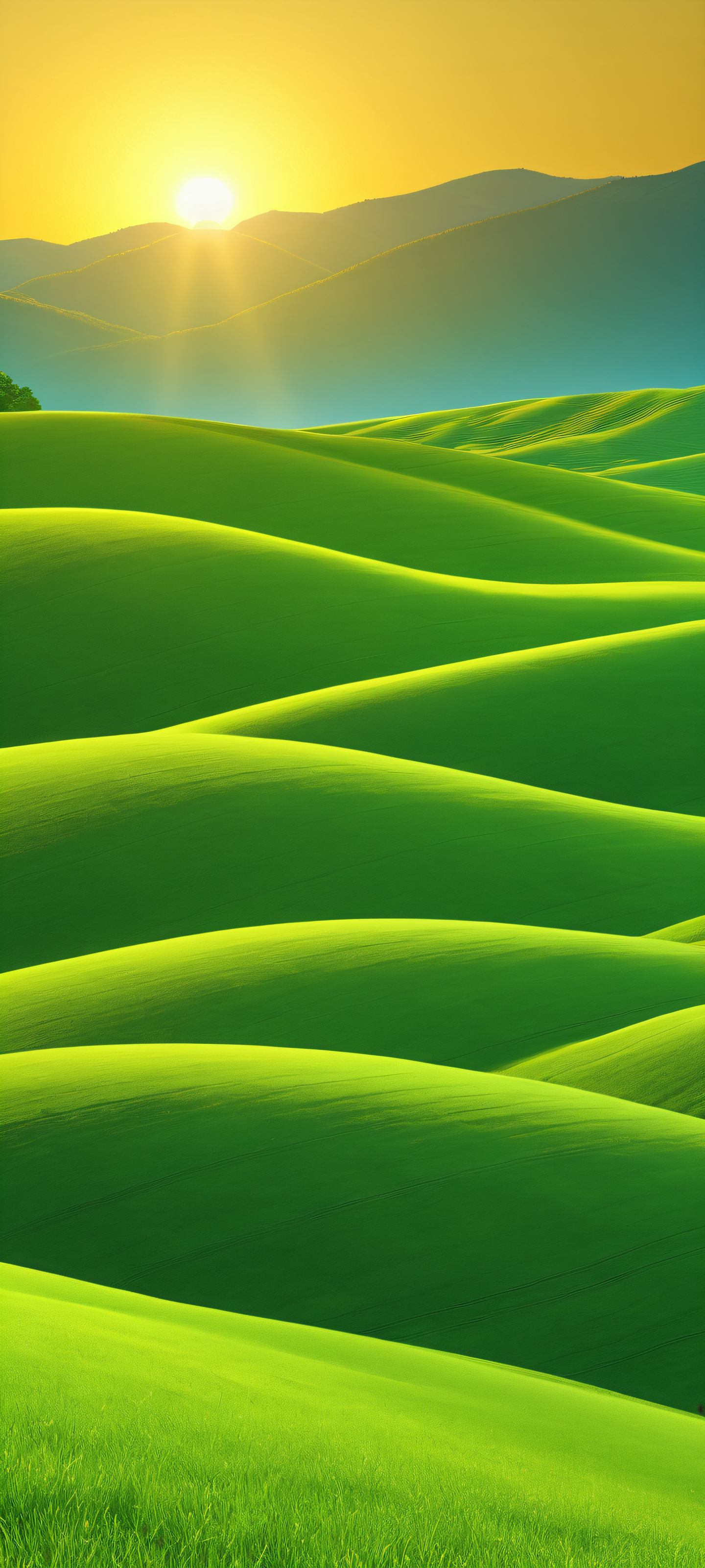 Elevate your mobile experience with this stunning vertical landscape, perfectly optimized for iPhone, Samsung Galaxy, and Android home screens. Witness the surreal beauty of a sunset over rolling hills, expertly crafted in crisp 2K QHD resolution, ensuring an unparalleled visual treat on any device.