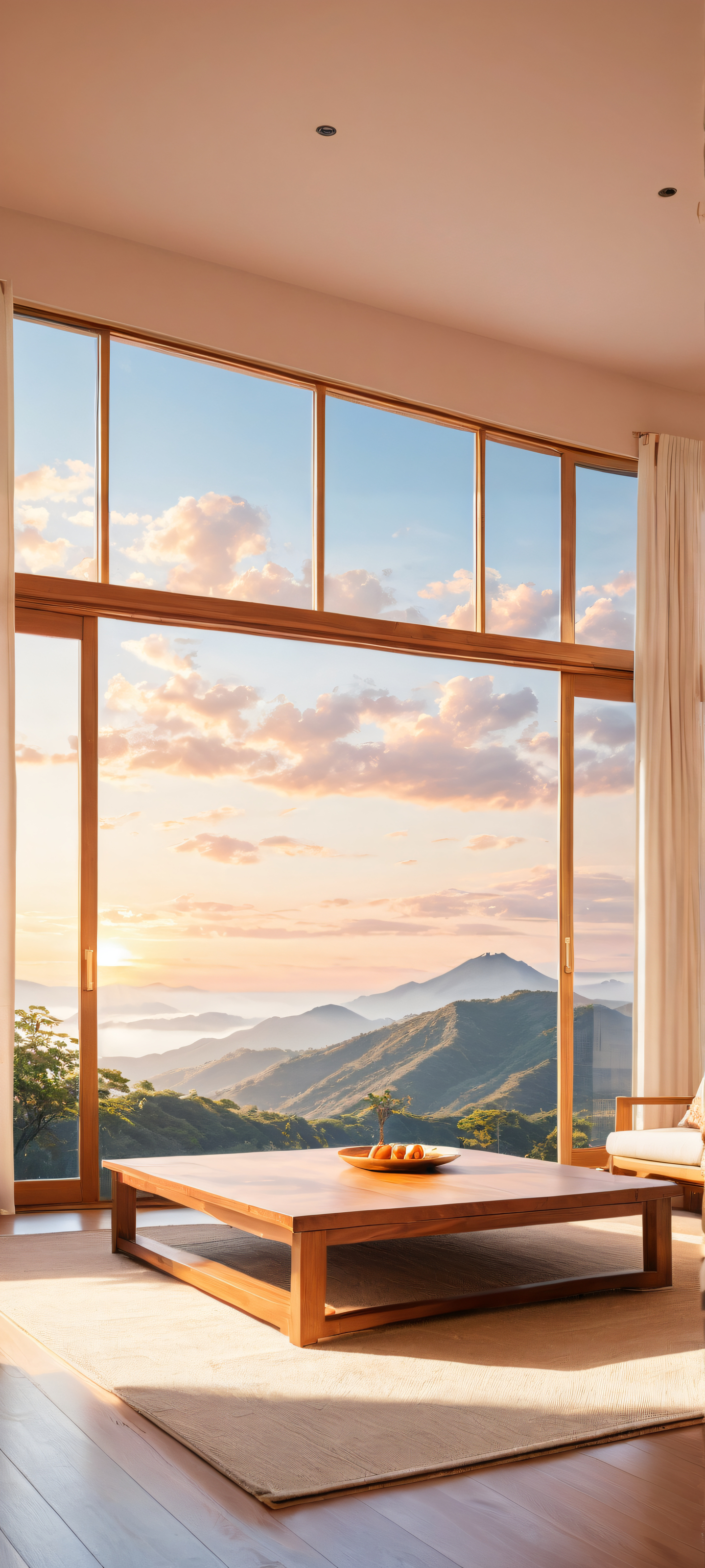 A breathtaking vertical portrait artwork of Tsukumo Yuki placed in the lower-middle with insane micro-details and intricate tatami patterns., Perfectly clean and empty top half with vast pure void, allowing UI widgets to breathe comfortably. Tatami floor in the bottom half, radiating warmth and coziness., Award-winning digital art with pristine clarity, perfectly blending anime elements with 4K/8K resolution precision., Ethereal lighting that simulates a warm kotatsu glow, softly illuminating the subject while creating an inviting atmosphere., #FFC5C5 #8B9467 #F2DEDE #FFD700 #6A5ACD: Dominant colors of soft pink, earthy brown, beige, golden yellow, and sky blue, evoking a sense of comfort, serenity, and tranquility., ethereal lighting, radiant, brilliant colors, ray traced reflections, pristine clarity, portrait composition, centered subject in the lower middle, perfectly clean and smooth top half for UI, extreme depth of field blurred background, highly textured surfaces, intricate micro-details, physically based rendering, award-winning digital art, epic breathtaking scale, stunning visual impact, perfect composition, macOS wallpaper aesthetic, masterpiece, 2K QHD resolution, 9:20 aspect ratio.