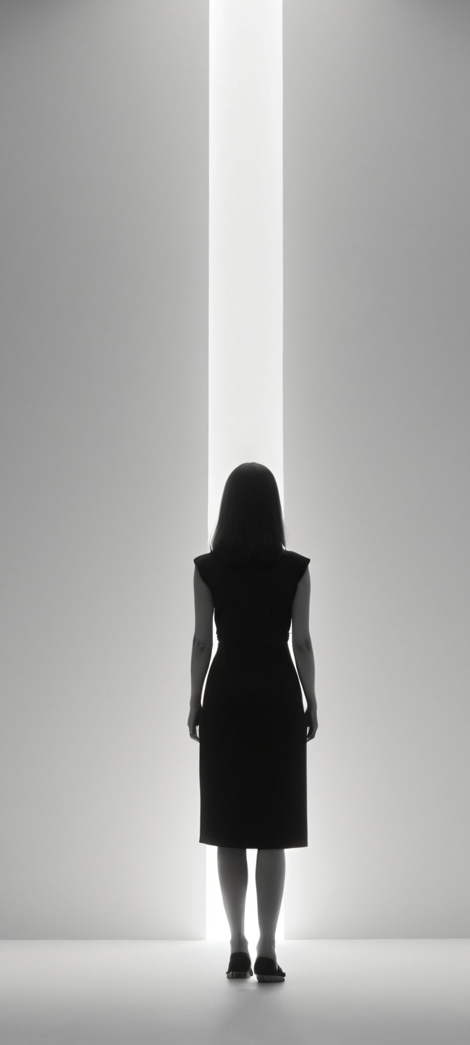 A serene human figure stands amidst a stark urban backdrop, perfectly framed for iPhone/Android displays.