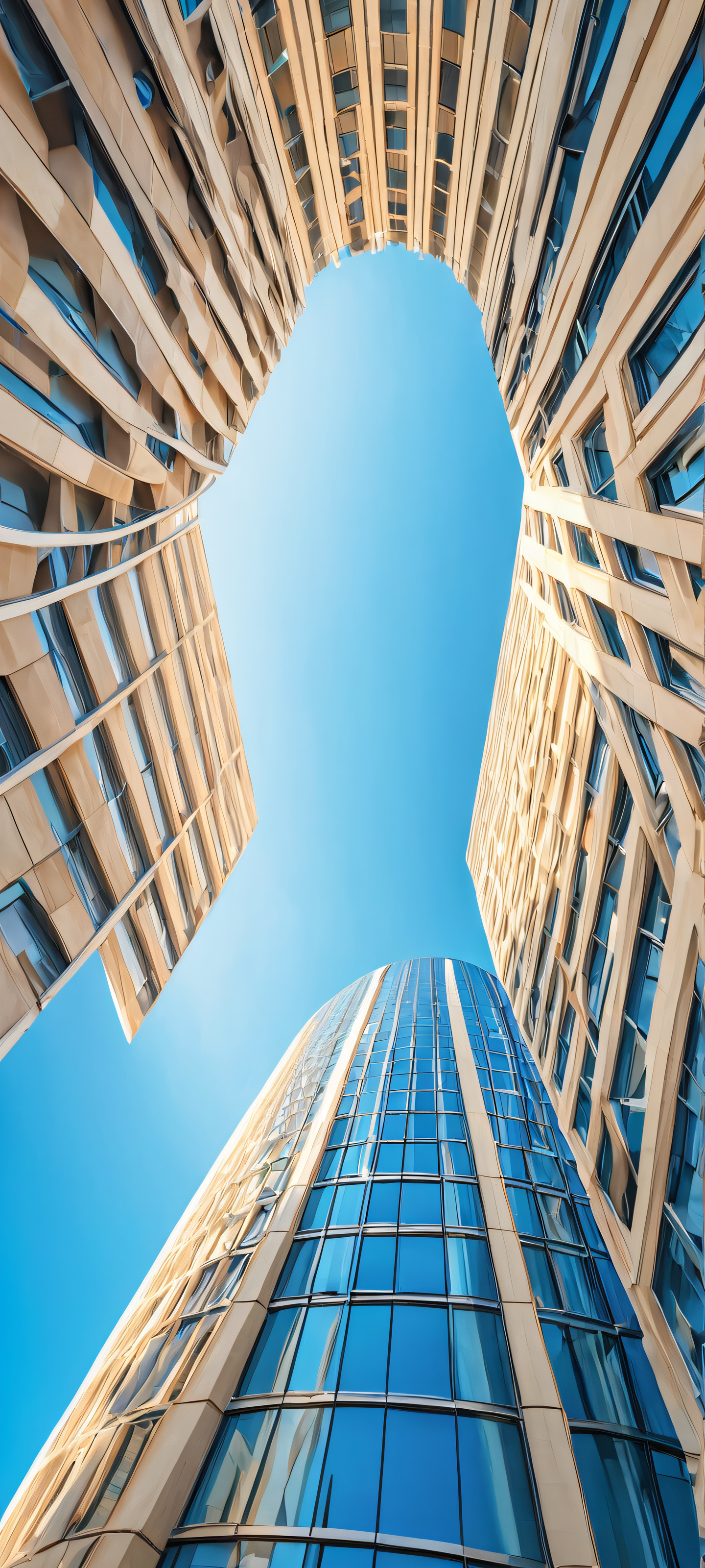A serene modern building against a brilliant blue sky, perfectly optimized for iPhone and Android home screens.