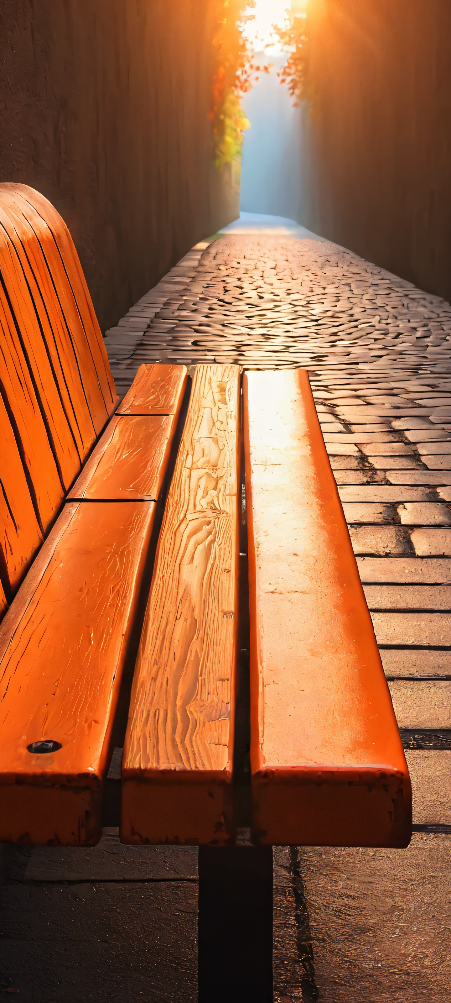 Immerse yourself in this stunning vertical mobile wallpaper, showcasing a serene urban oasis. This masterpiece is designed to perfectly complement your iPhone, Samsung Galaxy, or Android home screen, providing a breathtaking visual experience with its warm orange hues and highest quality details.