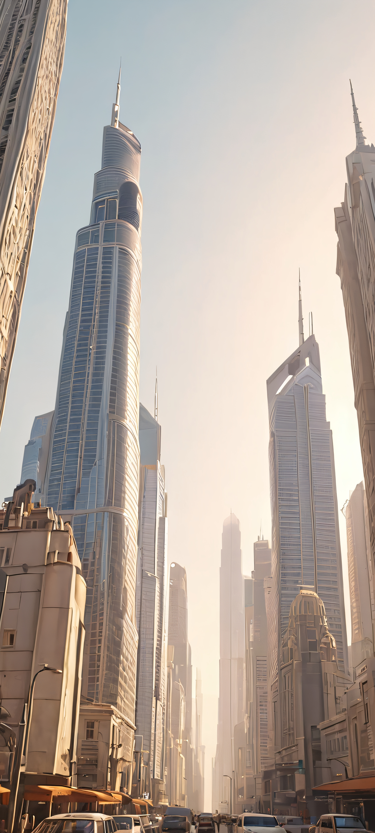 Experience the thrill of urban living with this breathtaking vertical wallpaper. Perfectly optimized for your iPhone, Samsung Galaxy, or Android home screen, this masterpiece features highly detailed, realistic skyscrapers set against a harsh midday backdrop. Get ready to elevate your mobile experience with this stunning visual treat!